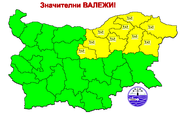 Националният институт по метеорология и хидрология обяви жълт код за значителни валежи за Североизточна България на 29 март.