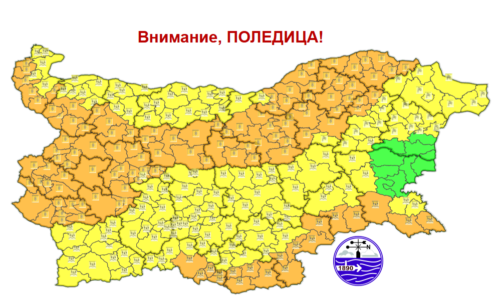 В събота температурите бързо и чувствително ще се повишат. Рано сутринта ще превали слаб дъжд и в районите със снежна покривка за кратко ще се образуват заледявания и поледици. След обяд от юг на север ще завали дъжд, като в Югоизточна България се очакват по-значителни количества и гръмотевици. Към края на деня вятърът от север-североизток ще започне да се усилва. С него бързо ще нахлува студен въздух. В Североизточна България дъждът ще премине в сняг, ще има нови заледявания и поледици.
