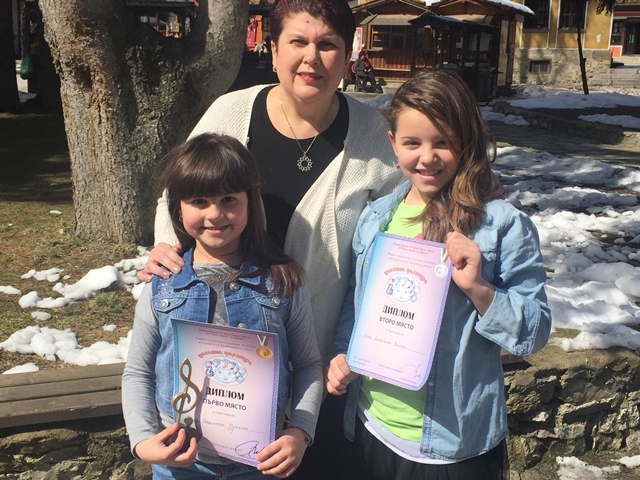 На 21 и 22 март 2015г. в град Карлово се проведе Национален конкурс за млади изпълнители на популярна музика ,,Песенна палитра''. Журито, под председателството на г-н Хайгашод Агасян, присъди първо място на седемгодишната Мира Пуйкова и втора награда на Габи Вълчева, солисти от Детска вокална група ,,Слънце'' с ръководител Наталия Константинова. Мира изпълни песните ,,На купон'' и ,,Ваканция'', състезавайки се с 30 деца от първа възрастова група. С песните „Мама” и „Алелуйя” се представи Габи във втора възрастова група, в която взеха участие над 40 деца.
