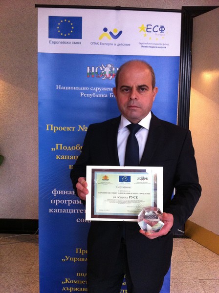 Община Русе беше удостоена с европейския Етикет за иновации и добро управление на местно ниво. Наградата беше връчена на кмета Пламен Стоилов от министъра на регионалното развитие Десислава Терзиева. Официалната церемония по награждаването се проведе днес в к.к. Албена, в рамките на Годишната среща на местните власти, организирана от Националното сдружение на общините в Република България.