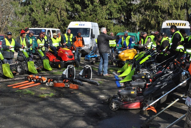 Фирмата, изпълняваща дейностите по поддържане на озеленените площи и дървесната растителност разполага с: