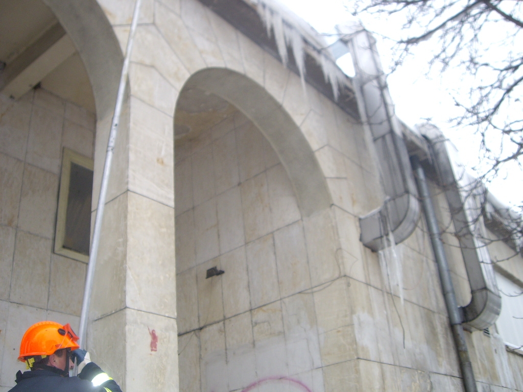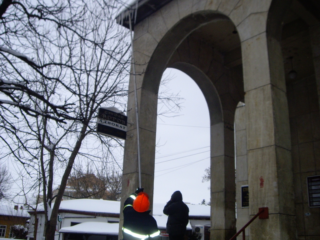 Общинската администрация разполага с един екип от трима души и една вишка. Обезопасяването на сградите се извършва по сигнал на ръководителя на съответната общинска структура, която се помещава в сградата. Днес екипите разчистиха покрива на Общинския младежки дом и сградата на бившите Градски хали от опасно надвисналите ледени висулки.