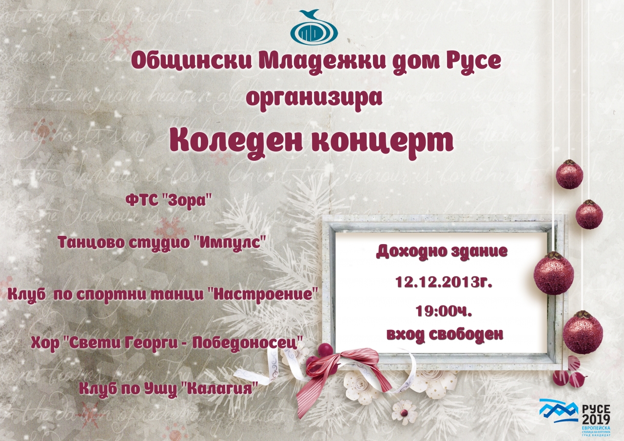 Коледният концерт е част от 22-то издание на Коледно-новогодишния фестивал организиран от Община Русе.