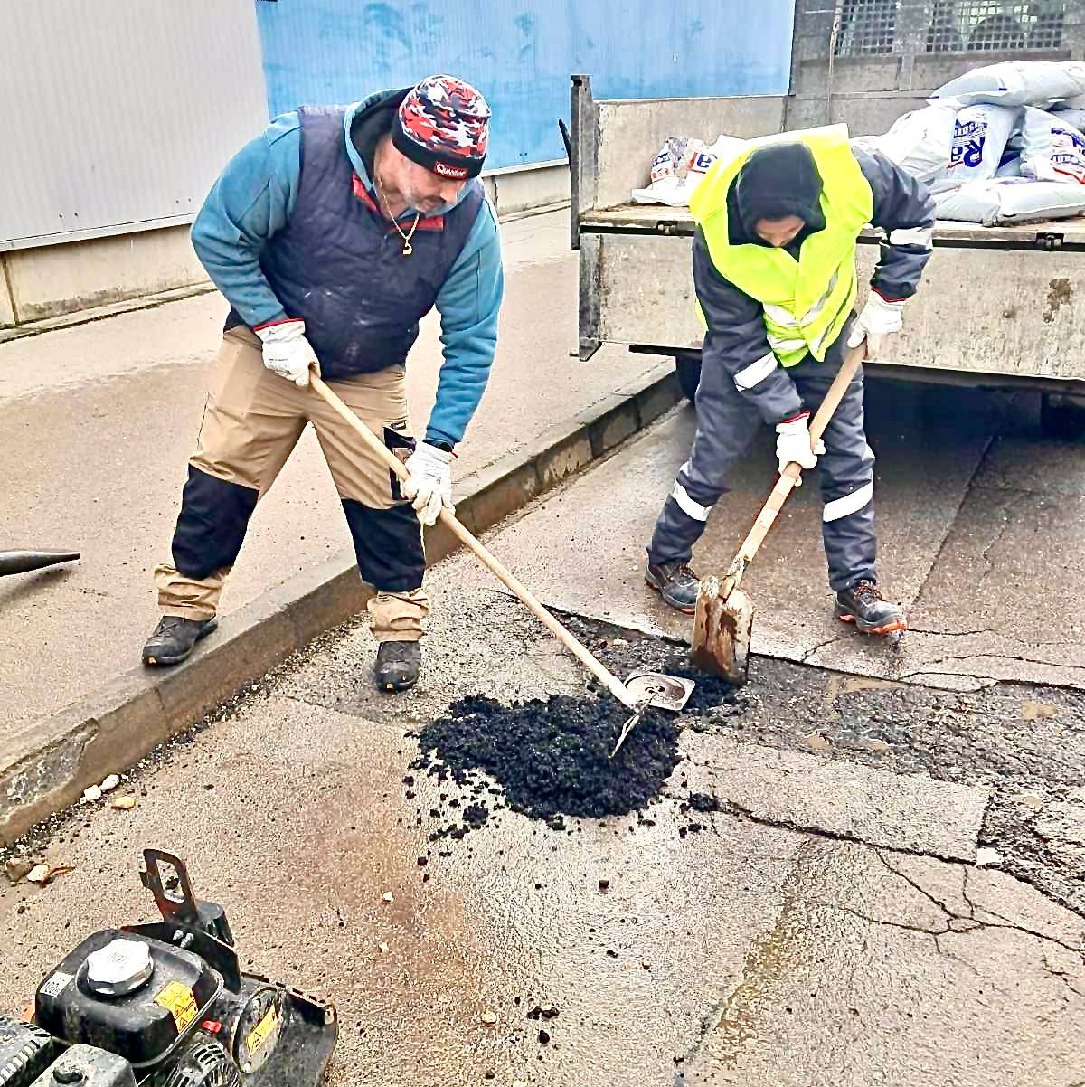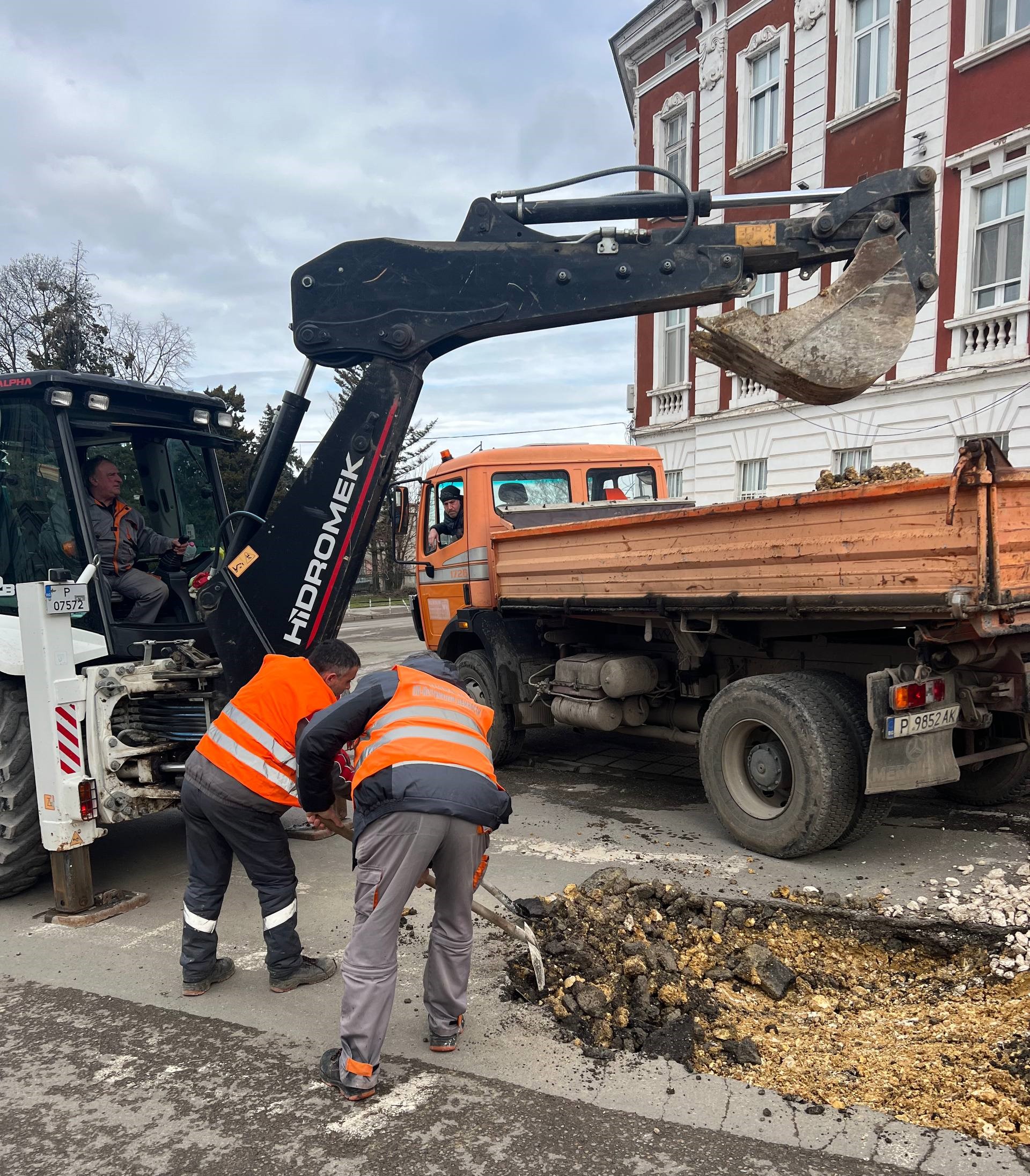Служители на ОП „Комунални дейности“ до обяд отстраняваха деформации по пътните платна на улиците „Проф. Баларев“, „ Борислав“, „Константин Иречек“, „Пристанищна“ ( около кръстовището с ул. „Ген. Радецки“), „Тунджа“, „Рига“ / последната спирка на автобусна линия 9/ , бул.„България“, бул. „Славянски“ на кръстовището с „Придунавски“.