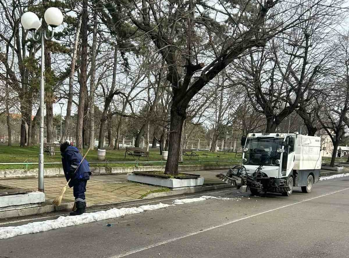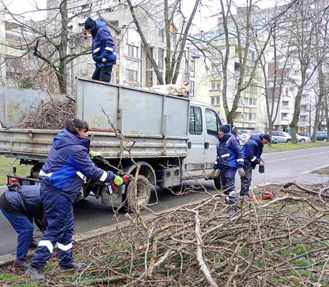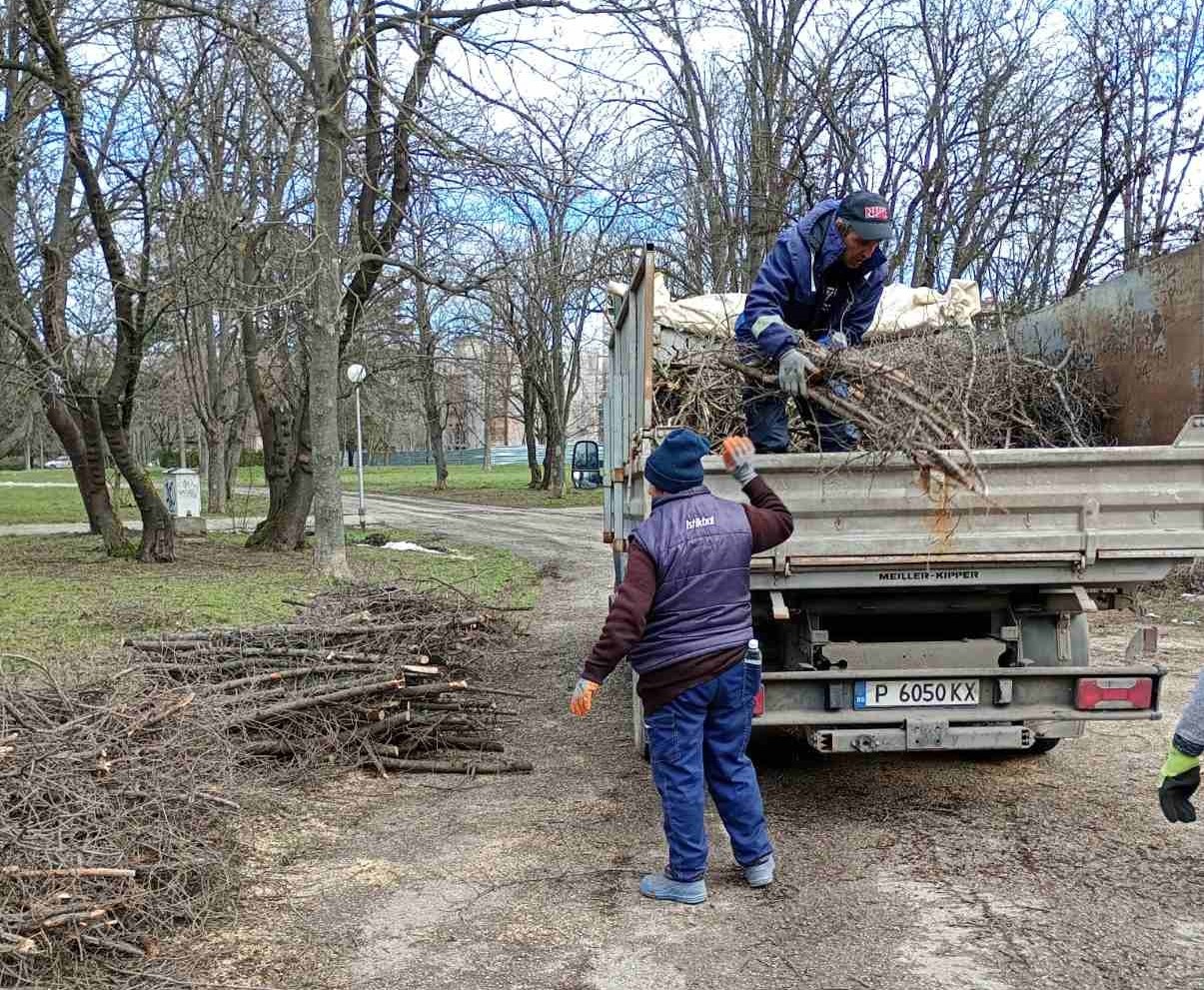 Екипите на ОП „Паркстрой“ метат алеи и събират изсъхнали клони в Парка на младежта и по бул. „Цар Освободител“, като паралелно реагират и на сигнали, подадени на тел. 112.