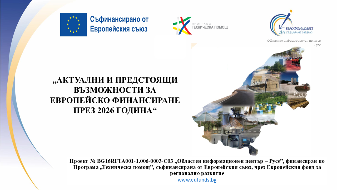 Областният информационен център започна днес годишната си поредица от информационни срещи в общините на област Русе. Първото събитие се състоя днес в Община Иваново. Кампанията се осъществява под мотото „Актуални и предстоящи възможности за европейско финансиране през 2026 г.“ и ще продължи до 18 март.