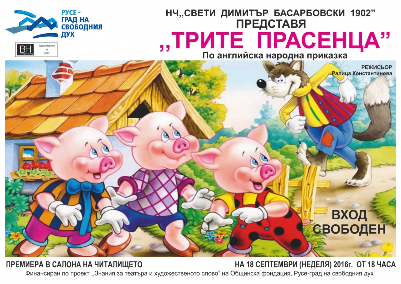 На 18 септември (неделя), от 18:00 часа, на сцената на Народно читалище ,,Свети Димитър Басарбовски – 1902“ – село Басарбово, ще се състои премиерата на постановката „Трите прасенца“. Режисьор е Ралица Константинова, а в ролите ще видим дванадесет деца на възраст от 6 до 11 години. Сценарият е изпълнен с много хумор, песни и танци.