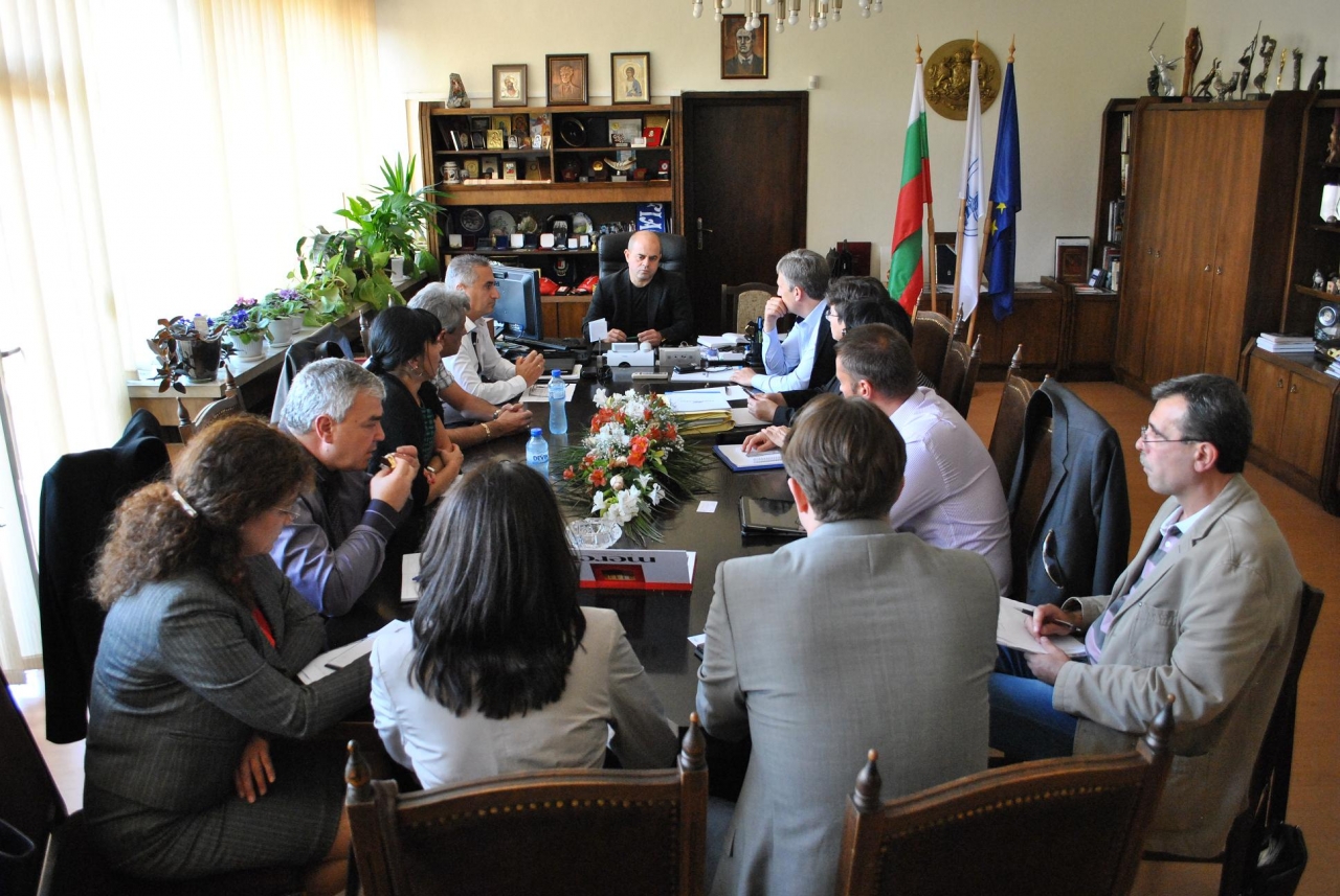 По-късно, представителите на ЕНЕРГО-ПРО Вана се срещнаха с кмета Пламен Стоилов. В разговора се включиха и заместниците Даниела Шилкова, Свилен Иванов, Димитър Наков и и.д. главен архитект Живка Бучуковка. Г-н Стоилов определи ЕНЕРГО-ПРО Варна като ключов партньор на Община Русе и даде висока оценка на досегашната комуникация с дружеството. Той благодари, че мениджърския екип се е съгласил за среща с живеещи в АОНСУ и изрази надежда, че казусът ще намери решение. Г-н Абаджиев подчерта, че форматът на срещата е знаков и заяви, че той е първи по рода си за дружеството. На нея бяха обсъдени възможностите за решаване на различни въпроси, възникнали в съвместната работа на дружеството и Община Русе, както и начините за скъсяване на сроковете на административните процедури.