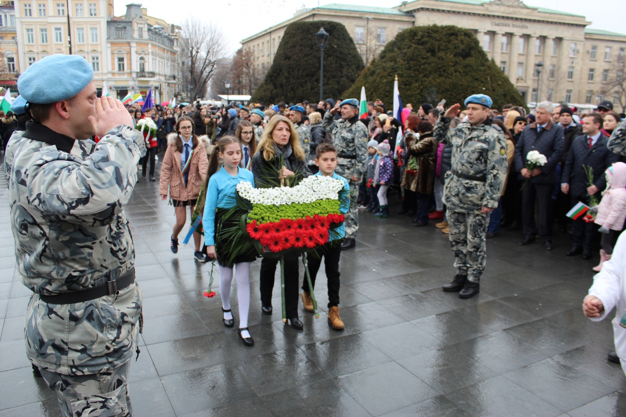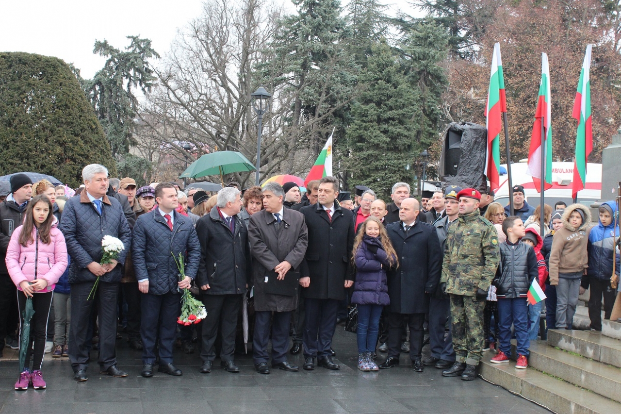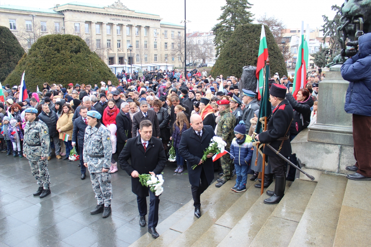 Днес, пред Паметника на Свободата, в чест на 3 март – Национален празник на Република България и 141 години от Освобождението, се състоя тържествена церемония по поднасяне на венци и цветя. На събитието присъстваха кметът Пламен Стоилов, народни представители, зам. областните управители на Област Русе Свилен Иванов и Валентин Колев, зам.-кметът по комунални дейности Наталия Кръстева, директорът на дирекция „Култура и образование“ Ирена Петрова, председателят на Общински съвет – Русе и ректор на РУ „Ангел Кънчев“ чл. кор. проф. д.т.н Христо Белоев, председателят на Общото събрание на РУ „Ангел Кънчев“ Велизара Пенчева, делегация от Община Гюргево, общински съветници, граждани и гости на града.