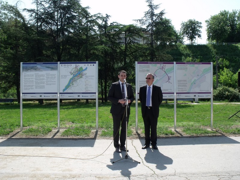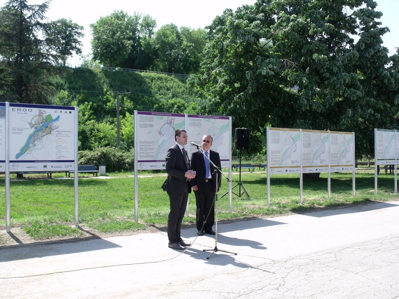 Разположената на русенския кей експозиция беше открита от зам.-кмета по Европейско развитие Страхил Карапчански и от Петер Шнайдер - председател на консорциума «Пан план-Ласи-Булплан», който е изпълнител на проекта. Г-н Карапчански подчерта ключовото значение на проекта за бъдещото развитие на Еврорегион Русе-Гюргево, както и за привличането на инвестиции от двете страни на реката. Г-н Шнайдер уточни, че стремежът на изпълнителя е бил да предложи проекти, които да имат съществен принос за преобразяване визията на Еврорегиона. Той допълни, че вече има фирми, които проявяват интерес към реализиране на проекти по ЕРГО МАСТЕРПЛАНА.