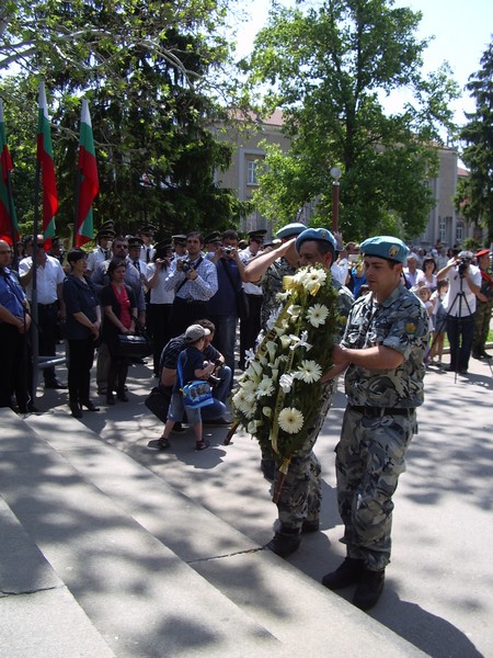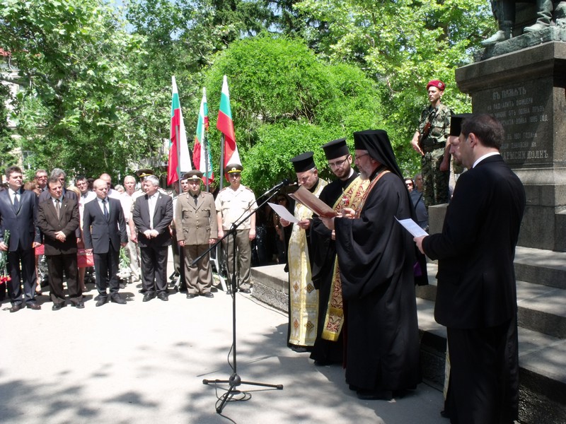 В 12.15ч., под звуците на Общинския духов оркестър, Литийно шествие, с дарената на града ни частица от мощите на Св. Георги, тръгна от Паметника на Свободата и се отправи към Паметника на загиналите в Сръбско-българската война. Там се проведе Тържествената церемония по повод 6 май – Ден на храбростта и българската армия. Слово произнесе д-р Андриан Райков – заместник областен управител на Област Русе. Архимандрит Виктор – протосингел на Русенската Света митрополия и православни свещеници отслужиха заупокойна молитва и благодарствен молебен. Държавни и общински институции, Генералното консулство на Русия в Русе, представителите на чуждестранните делегации, граждански организации, политически партии и сдружения поднесоха венци и цветя пред паметника. В церемонията участва почетна рота от русенския гарнизон и Общинският духов оркестър. Водещ беше актьорът Косьо Станев.