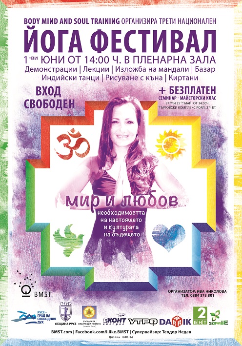 На 1 юни (неделя), от 14:00 часа, в Пленарна зала на Община Русе ще се проведе Трети национален йога фестивал под надслов „Мир и любов - необходимостта на настоящето и културата на бъдещето“. Събитието се организира от Сдружение „Движение за хармонично развитие на човека“ Body Mind Soul Training (BMST) със съдействиетона Община Русе, Българска федерация по йога и с финансовата подкрепа на Общинска фондация „Русе-град на свободния дух“.