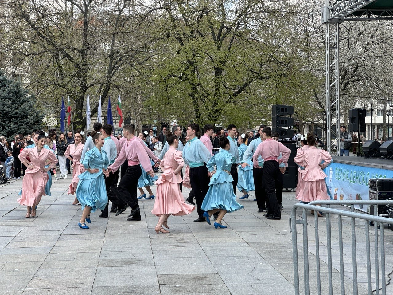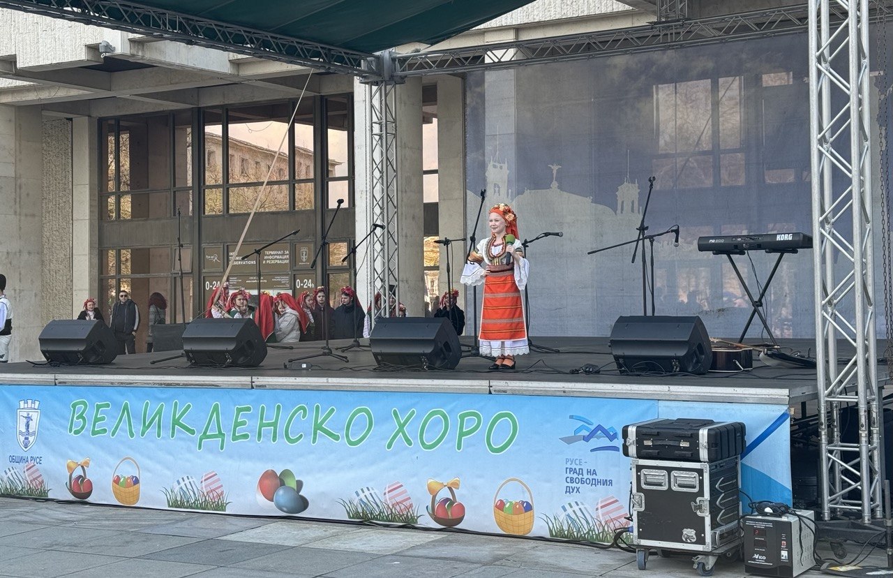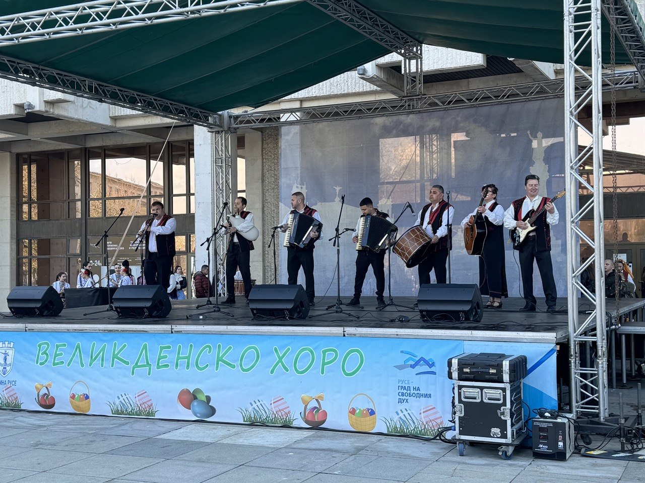 Празнична фолклорна програма събра жители и гости на Русе на пл. „Свобода“ по повод Великден. Събитието се организира от Община Русе съвместно с Фолклорен танцов театър „Найден Киров“ и се проведе за 35-и път.