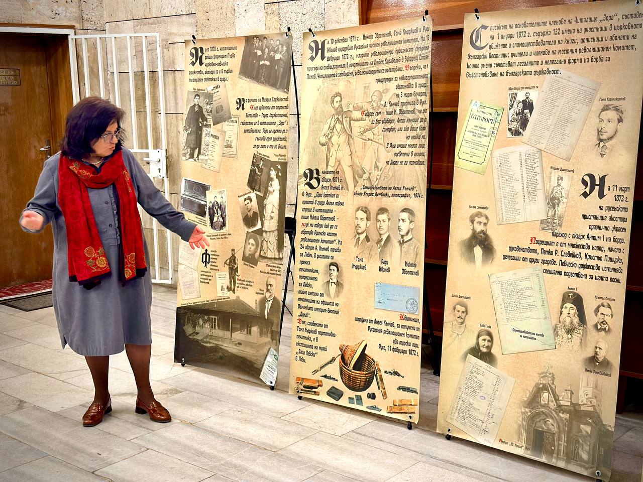 В документалната изложба са представени етапите от историята на читалището до днес, а неин куратор е д-р Веселина Антонова. Изтъкнатата русенска историчка и архивистка разказа пред присъстващите любопитни факти от експозицията. „Представили сме списъците за покани за първите балове изобщо в България, датиращи от периода 1867 – 1868 г. Русенци се справят прекрасно със светските навици по онова време и веднага след Освобождението посрещат подобаващо княз Александър Батенберг“, каза още д-р Антонова. Тя сподели, че първата голяма инициатива на читалището е поръчката към Николай Павлович да нарисува картина на светите братя Кирил и Методий, която до Освобождението се използва при честванията на 11 май, когато почитаме създателите на първата славянска азбука. За Русе е чест големият художник да създаде своето произведение специално за града.