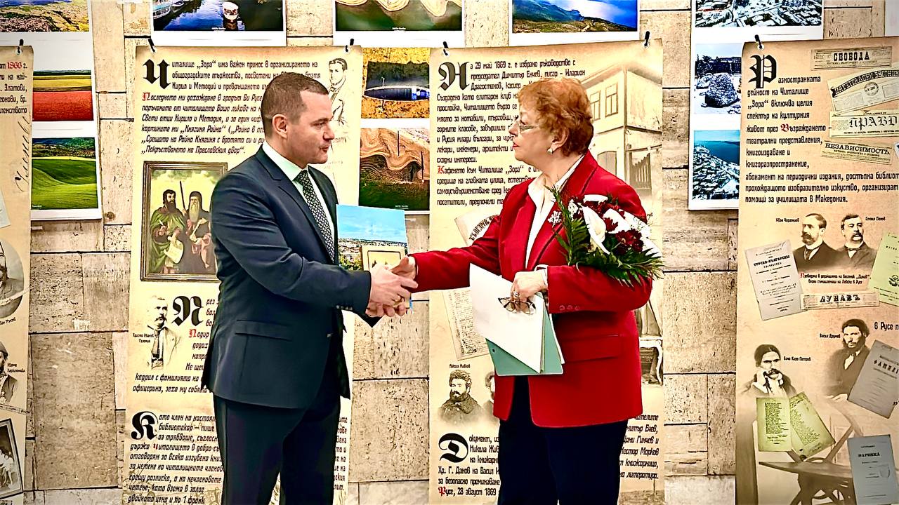Кметът Пенчо Милков връчи плакет на председателката на най-старото читалище в града за паметната годишнина