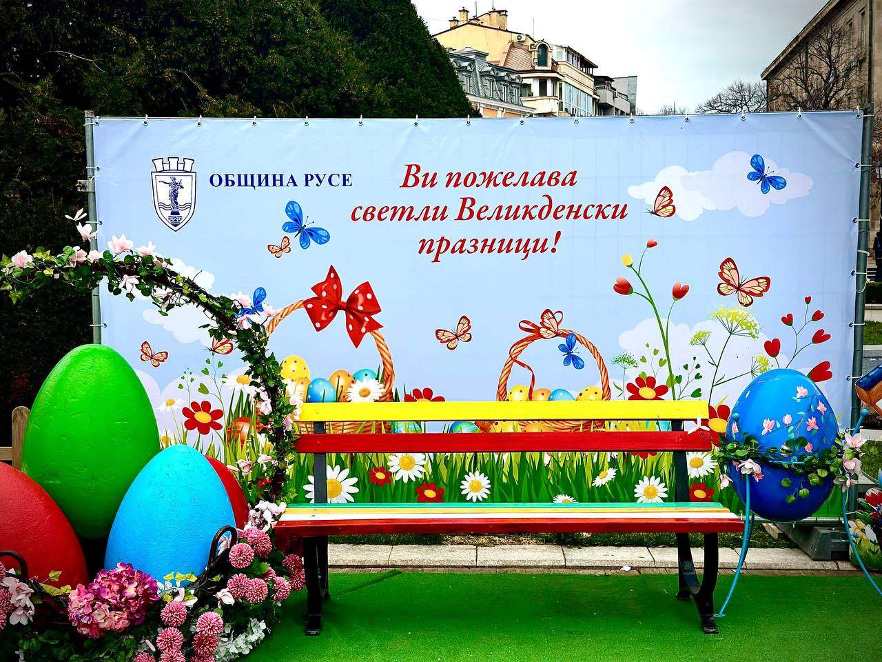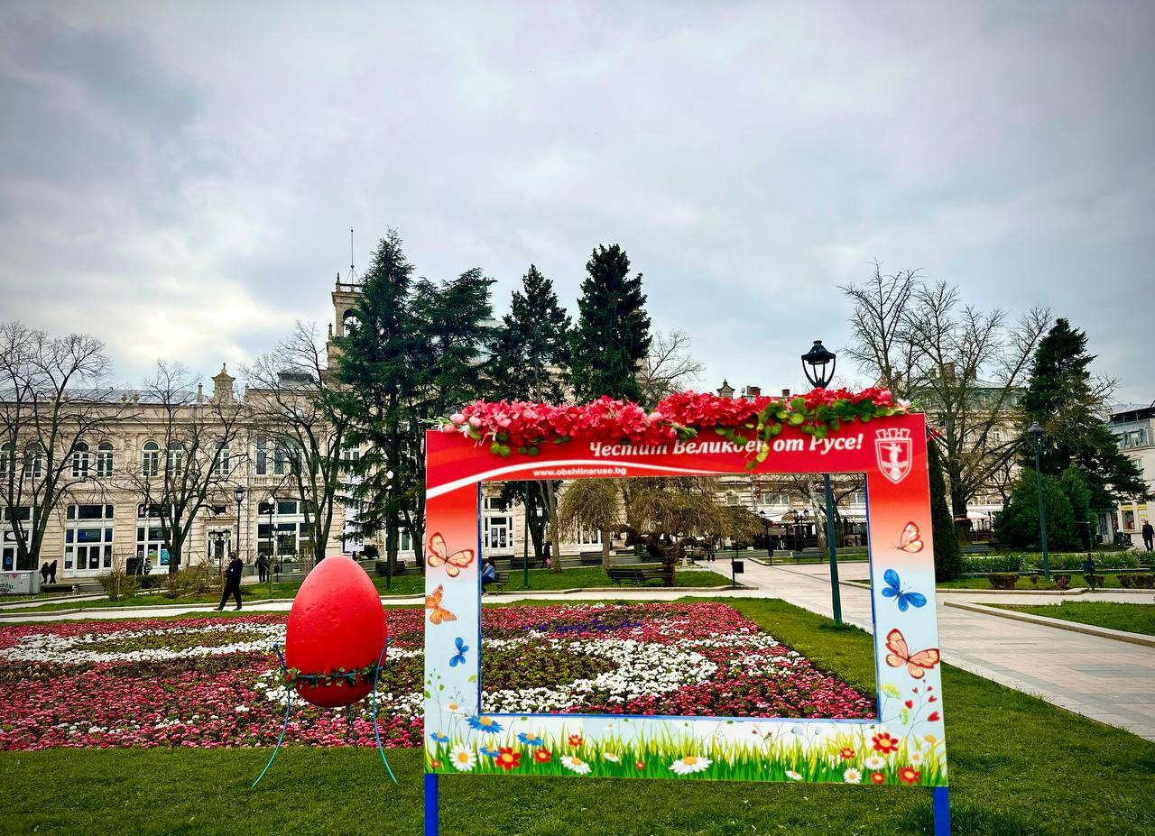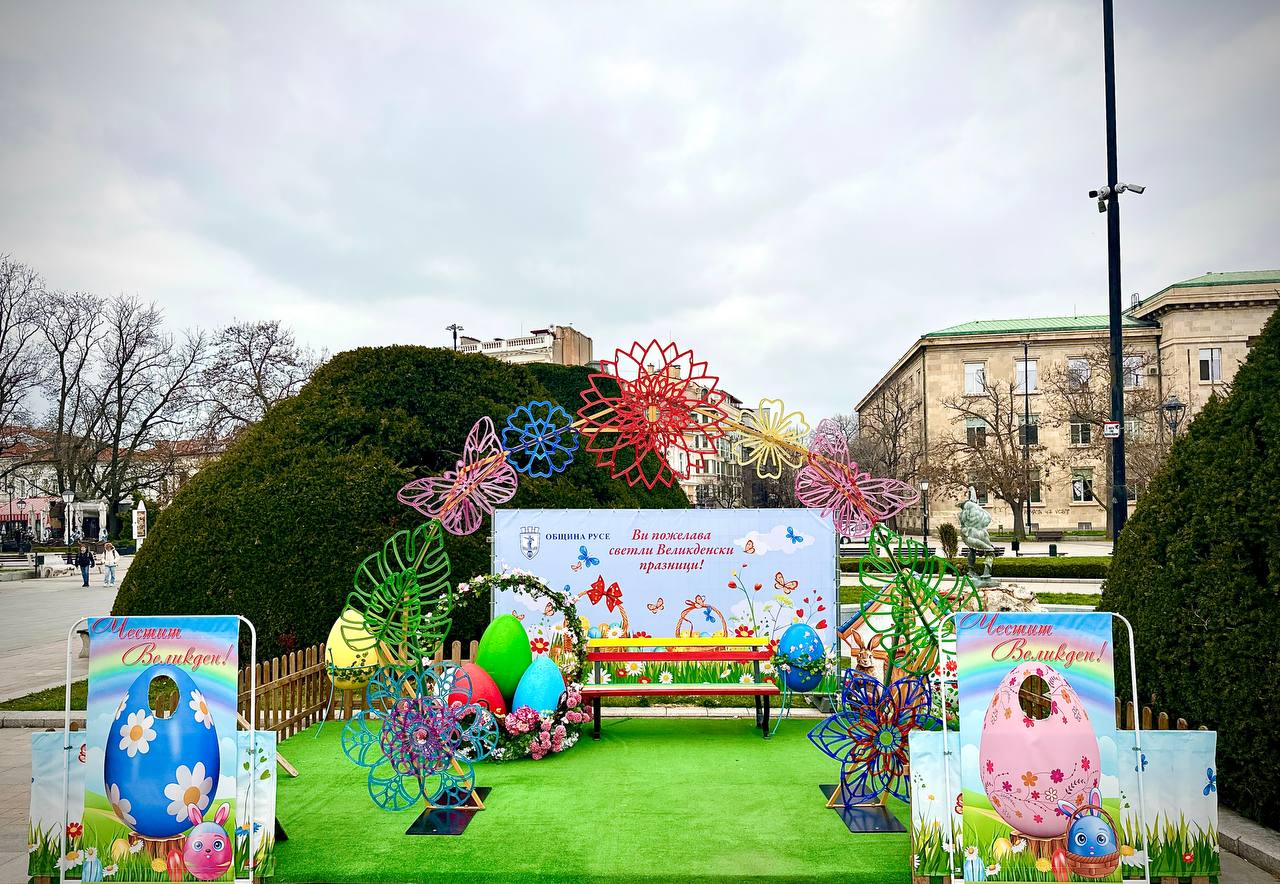 На площада традиционно ще бъде оформен кът с декоративни фигури – къщичка, пейка, кошница с яйца, пилета и зайчета, както и допълнително, по-малко пространство с кошници, а кашпите с макове ще допринесат за пролетната атмосфера. Двете алеи в близост до шадравана пред Община Русе ще бъдат осветени и украсени с декоративни цветя, птици, чадърчета и други елементи, които ще оформят атрактивна композиция тип „небе“ с празнични декорации.