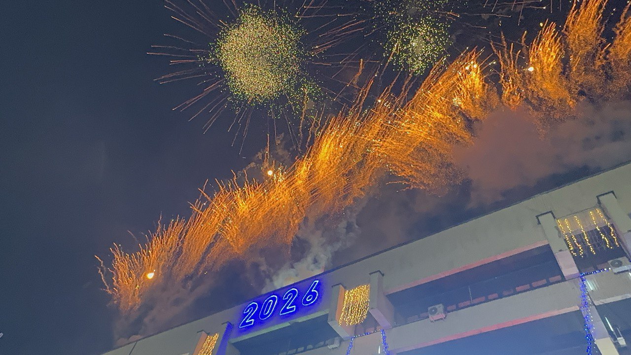 Малко преди полунощ на видеостената беше излъчено новогодишното приветствие на президента на Република България Румен Радев, последвано от тържествено отброяване на последните секунди на 2025 година и празнична заря.