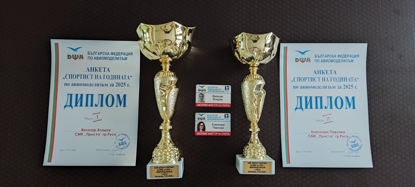 Припомняме, че на церемонията „Спортист на годината“ в Русе на 14 януари журналистите определиха Елеонора Павлова за най-добър спортист в приложните спортове. За постиженията си през 2023 г. тя стана първата жена в историята на авиомоделизма в България, която оглави годишното класиране на федерацията при мъже и жени, а през 2024 и 2025 г. Павлова се класира на второ място.