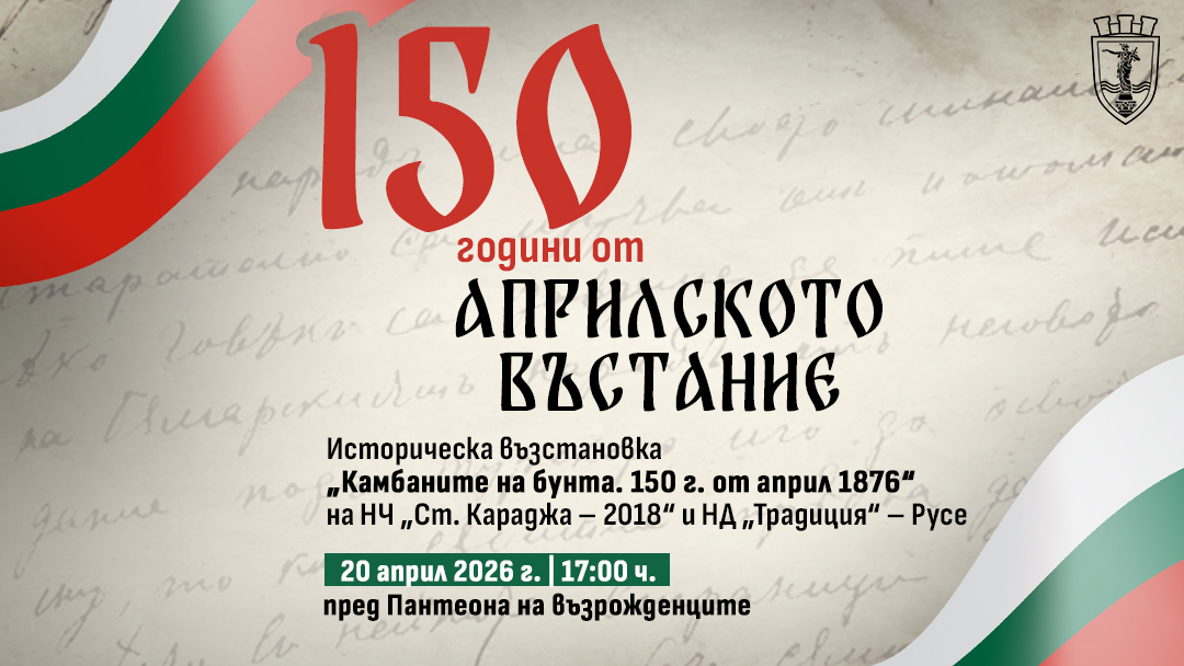 Община Русе организира тържествено честване по повод 150-ата годишнина от избухването на Априлското въстание – едно от най-значимите събития в българската история. Паметната дата ще бъде отбелязана на 20 април /понеделник/ от 17 ч. на площада пред Пантеона на възрожденците.