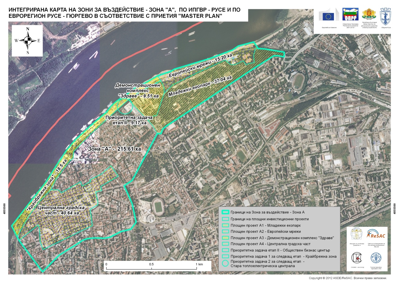 1. Определяне на визия за развитие на гр.Русе до 2020г., с оглед на трайното подобрение на икономическия, физическия, социален и екологичен статус на градските зони и на града като цяло, чрез изготвянето на комплексен целеви и проблемен анализ на настоящата ситуация на градската територия за идентифициране на проблемите и потенциала й за развитие, определяне и утвърждаване на 3 зони за въздействие, от които поне една със социален характер.