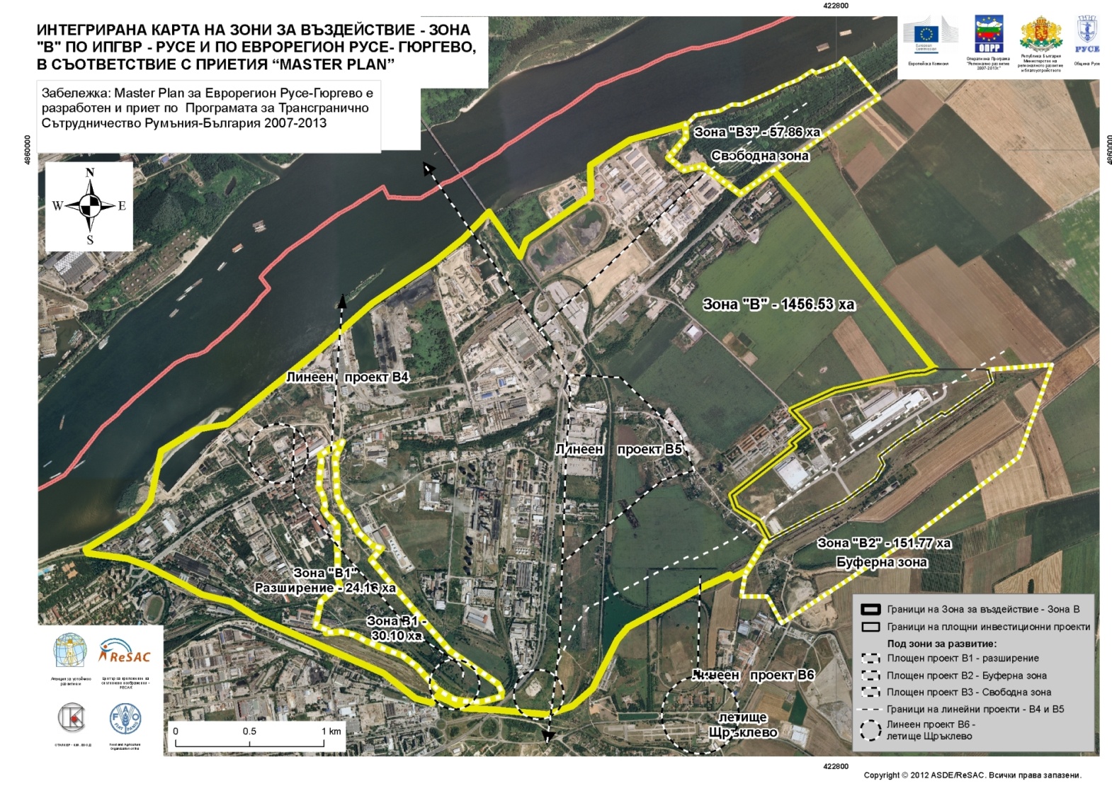 Зона В – зона с потенциал за икономическо развитие, с териториален обхват: кръстовището пред ГКПП Дунав мост, бул.”Тутракан”, до кръстовището на Свободна зона, западната й граница до р.Дунав, р.Дунав, на изток-местност ”Слатина”, включена в Общия устройствен план, районът на ЖП гара „Изток” и първия ред имоти югоизточно от ЖП линията до бул.”България”, терените в „Пухлево дере” северно от гара Разпределителна, бул.”България” до кръстовището на Дунав мост.