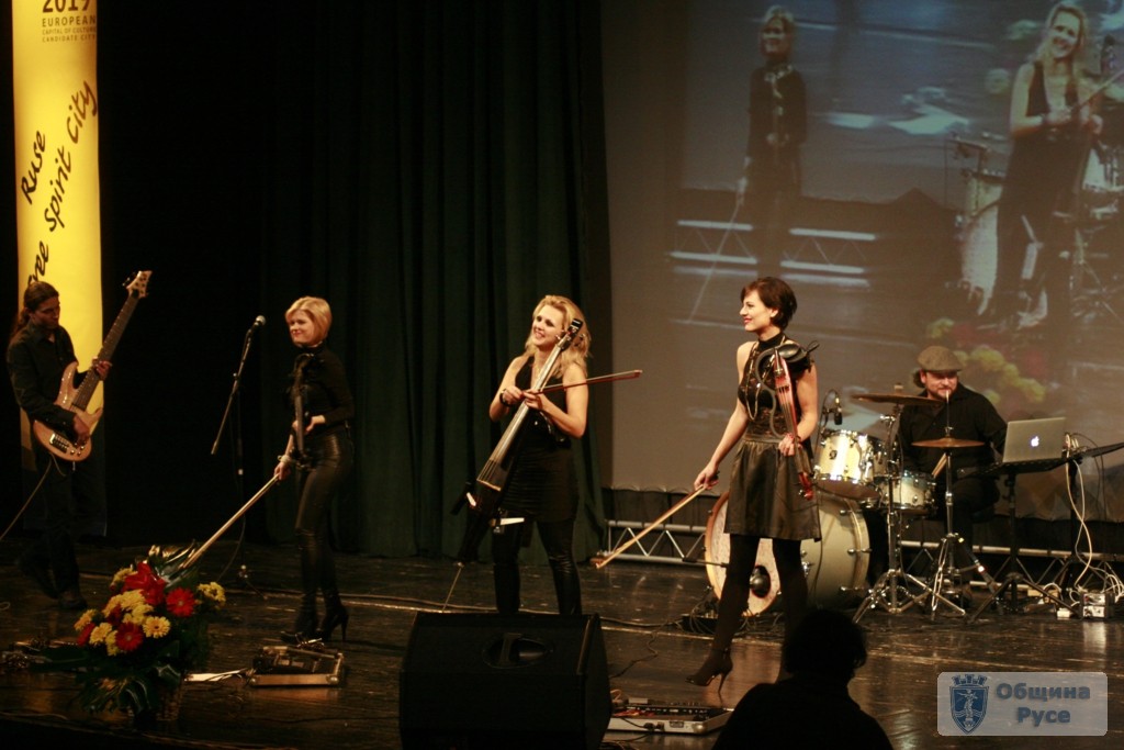 С концерт на атрактивния дамски струнен квартет „Стрингс“ в Голямата зала на Доходно здание, снощи беше даден официален старт на кампанията „Русе – град на свободния дух“. С нея, Дунавската столица на България ще подготви кандидатурата си за Европейска столица на културата през 2019, когато един български и един италиански град ще станат носители на престижната титла.