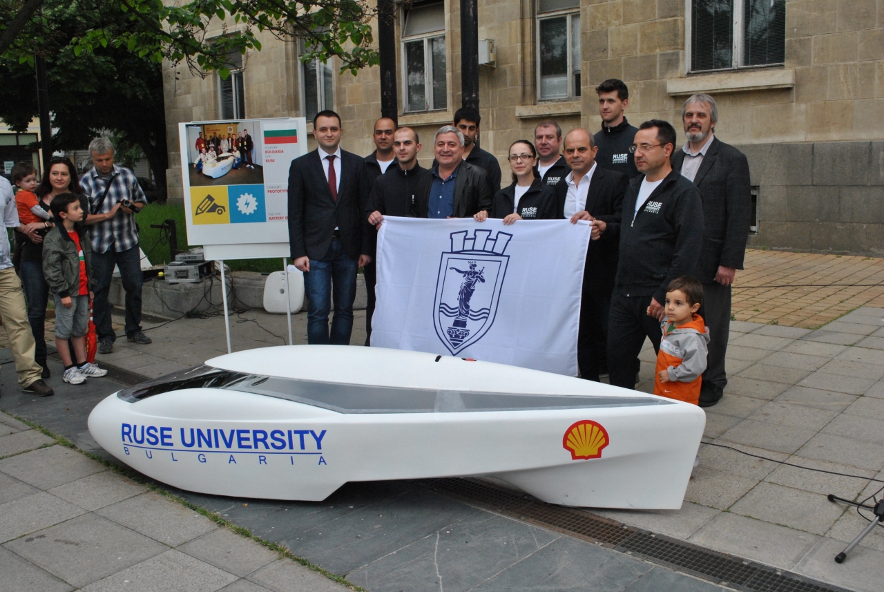 Отборът на Русенски университет „Ангел Кънчев“ показа футуристичен електромобил, с който ще вземе участие в тазгодишното международно състезание Shell eco marathon. Официалното представяне на возилото пред сградата на Съдебната палата беше часове преди екипът да замине за Ротердам, Холандия, където се провежда надпреварата. С пожелание за успех студентите бяха изпратени от кмета на Община Русе Пламен Стоилов, ректора на Русенски университет „Ангел Кънчев“ чл.-кор. проф. дтн Христо Белоев и десетки жители и гости на града.