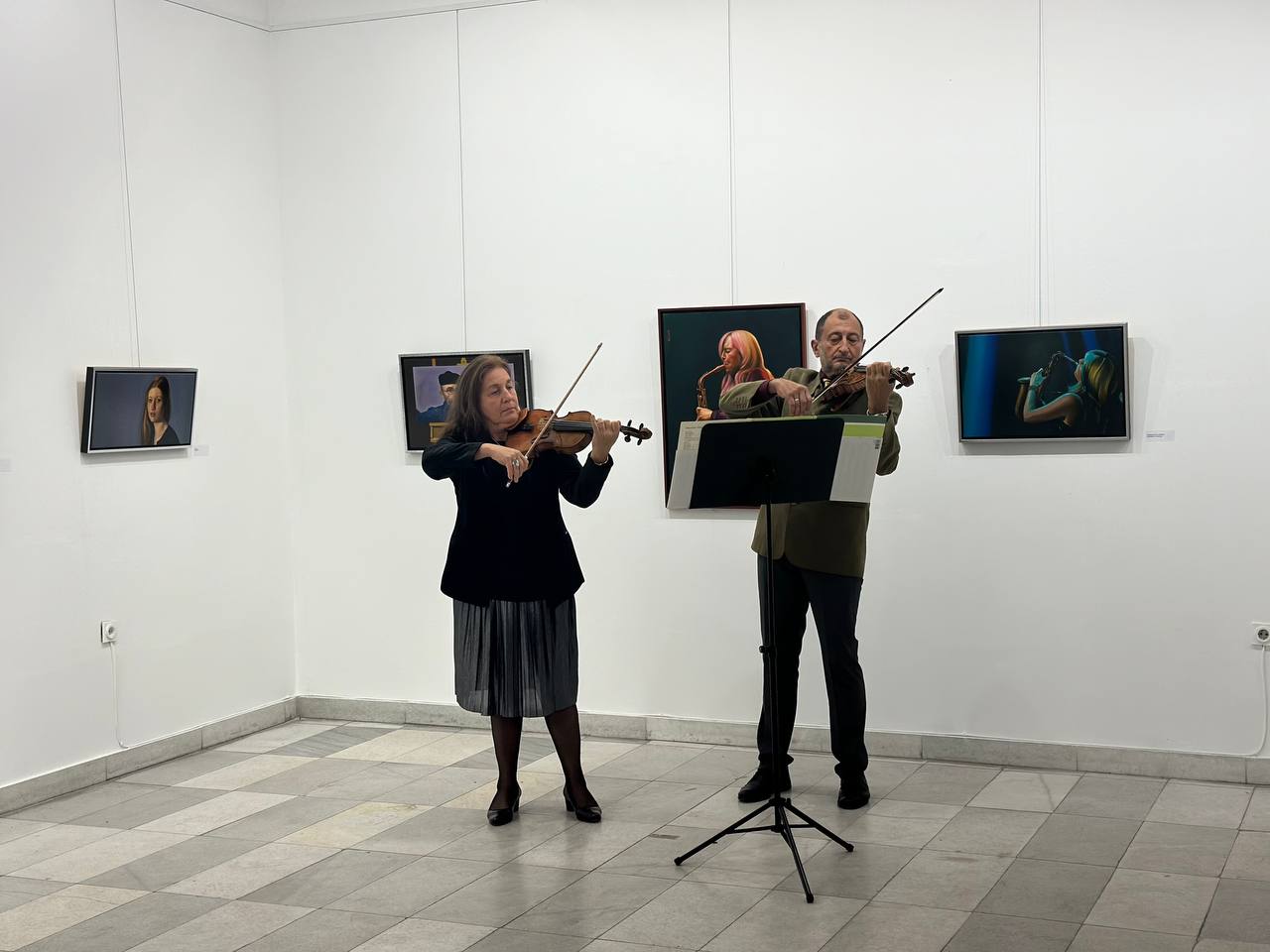 За доброто настроение на присъстващите по време на откриването се погрижиха дуо Валентин и Марияна Гогови със свои интерпретации на известни творби. Артистичното семейство е близко на русенския художник, като са работили заедно с него в Германия. Техните изпълнения на цигулка затвърдиха умението на Веселин Господинов да обединява живопис и музика в едно.