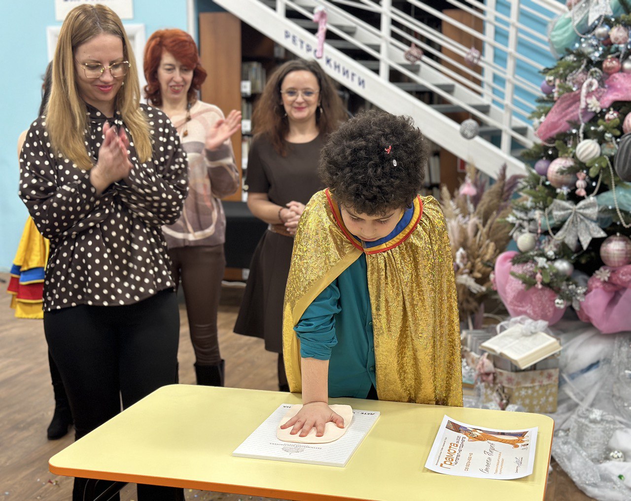„Изключваме телефона, отваряме книгата и не гледаме повече към телефона.“ Този съвет даде на присъстващите Симеон Гюров за най-добро преживяване с книга. Малкият русенец сподели, че любимото му четиво е приключенската история „Сребърната стрела“ на Лев Гросман. По традиция на Регионалната библиотека той остави своя отпечатък в Алеята на четящите деца на Русе.