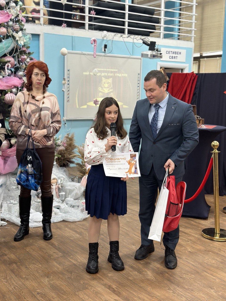 Трета в категорията „училищна възраст“ до 14 години стана Радина Ганчева на 7 г., а второто място зае Мария Дамянова. Всички отличени получиха награди, осигурени от Русенската библиотека, Община Русе и спонсорите на събитието.