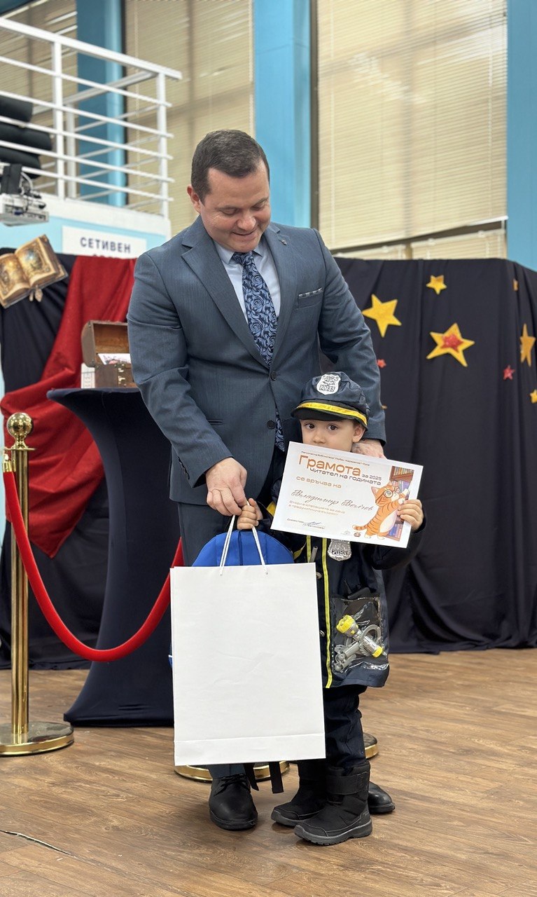 В категорията до първи клас на трето място се класира Аделина Дундарова на 6 г., Владимир Велчев на 3 г., който дойде на церемонията като служител на реда, стана втори, а първото място отиде при Мария Цветанова, която още няма навършена една година.