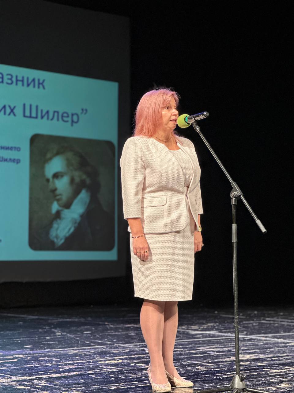 Началникът на РУО – Русе д-р Росица Георгиева също отправи приветствие по повод празника на русенското училище. „Изборът Фридрих Шилер да бъде патрон на вашата образователна институция е избор на просвещение и свобода, на културни ценности. А творчеството му е онази духовна основа, върху която изграждате европейското бъдеще на възпитаниците си“, каза тя.