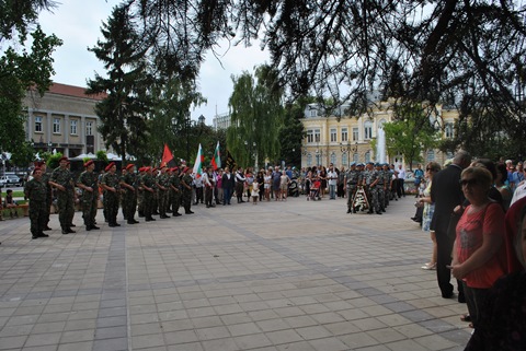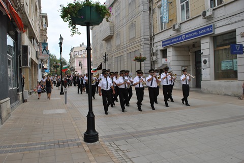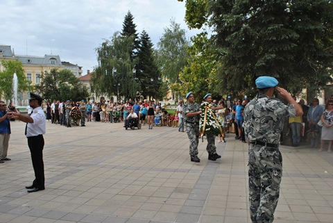 Годишнината беше повод церемонията да е предхождана от шествие на граждани и официални лица, водено от Общинския духов оркестър. Шествието тръгна в 11 ч. от Паметника на Свободата по ул. „Александровска“ с отправна точка Паметника на загиналите през Сръбско-българската война на обновения площад „Ал. Батенберг“. Именно там се проведе и тържествената церемония по поднасяне на венци и цветя.