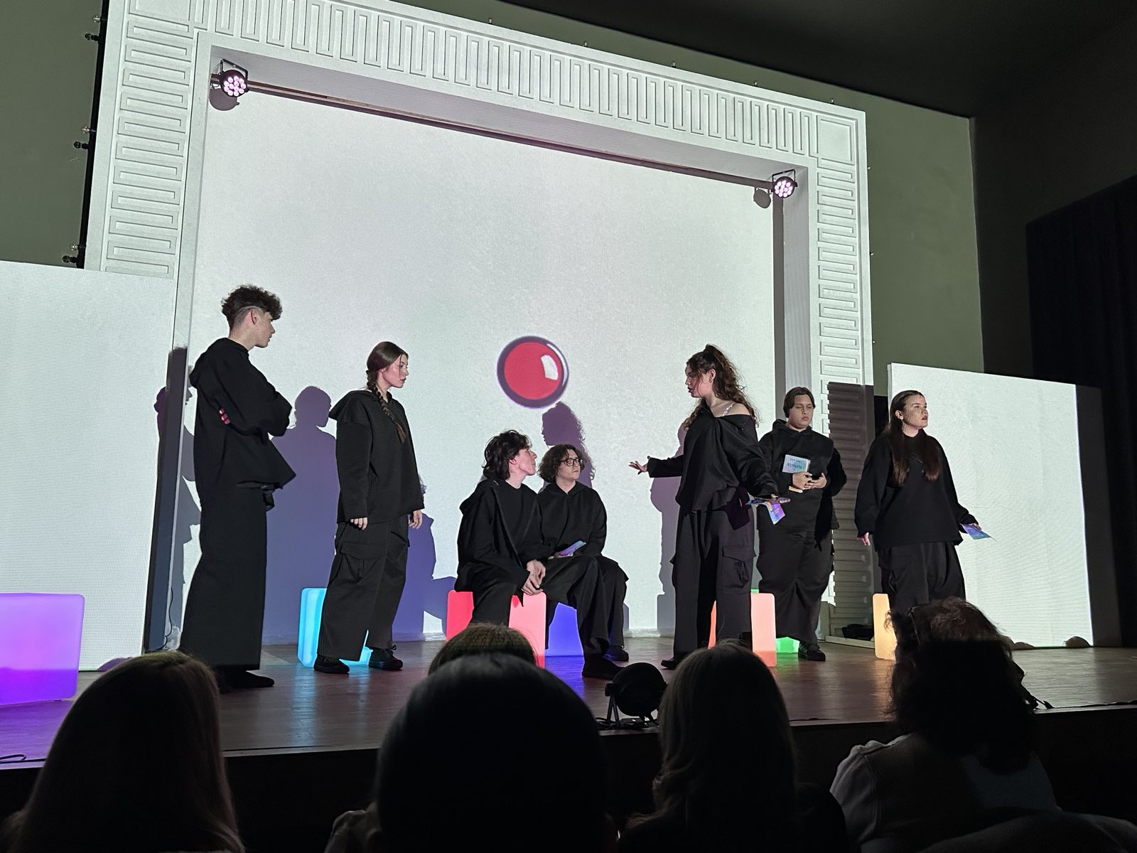 „Осмият цвят“ е създаден от деца за деца и възрастни и поставя темите за насилието, избора, емпатията и надеждата, без да обвинява, а чрез въпроси. Всеки от цветовете в спектакъла символизира различна форма на насилие, като осмият – белият – е символ на доброто. Сценарият е написан от децата от Писателско ателие „АБе Пис“, сценографията е на Декораторско ателие „Ателието“ с ръководител Боряна Йотова, а костюмите са изработени от ученици от ПГ по облекло „Недка Ив. Лазарова“.
