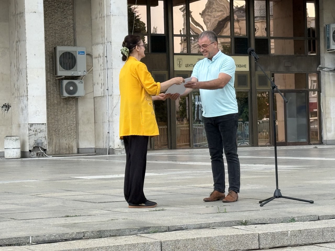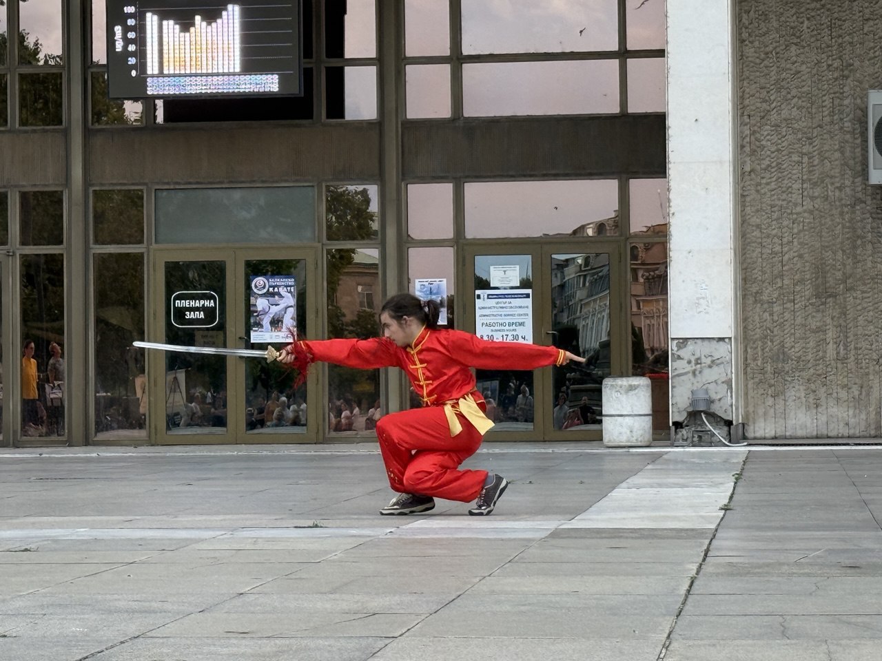 На следващия ден, 31 август, пространството пред сградата на Община Русе се превърна в сцена на впечатляващо шоу на открито. Публиката проследи видеопрограма на голям екран, след което последва кулминацията – атрактивен спектакъл, съчетаващ бойни изкуства и пантомима. Мария Неделчева получи от мл. експерта в дирекция „Младежки дейности и спорт“ в Община Русе Митко Ружинов поздравителен адрес от името на кмета Пенчо Милков. Ружинов подчерта, че ушу и тайчи са философии на живота, които учат на дисциплина, търпение и уважение, и че чрез тях се развиват концентрацията, балансът и душевната хармония у хората.