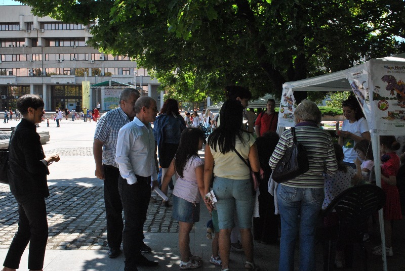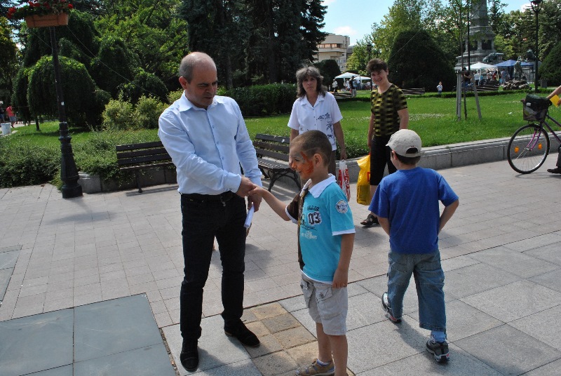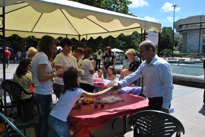 Кметът на Община Русе Пламен Стоилов поздрави най-нетърпеливите малчугани, които се включиха в Детски панаир на изкуствата на площад „Свобода” днес преди обяд. Русенският градоначалник и зам.-кметът по хуманитарни дейности Иван Григоров разгледаха ателиетата, построени от сутринта на площад „Свобода” и разговаряха с децата и техните родители.