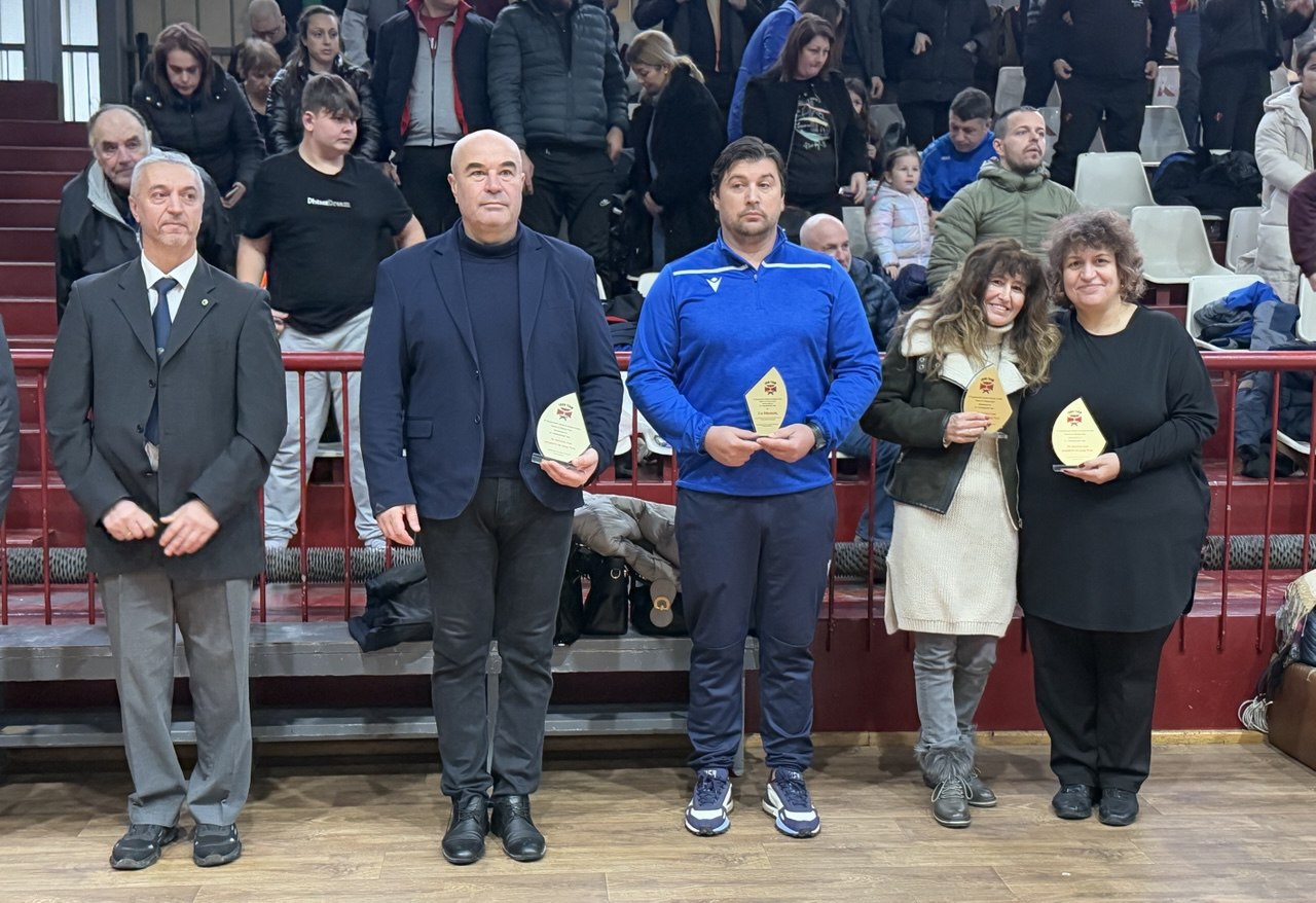 Великов отличи с почетни плакети и официалните гости на събитието – д-р Росица Георгиева, началник на Регионалното управление на образованието, Евгени Недев – директор на Спортното училище „Майор Атанас Узунов“, многократната шампионка по джудо Ивелина Петрова и Мая Петрова, директор на УСШ.