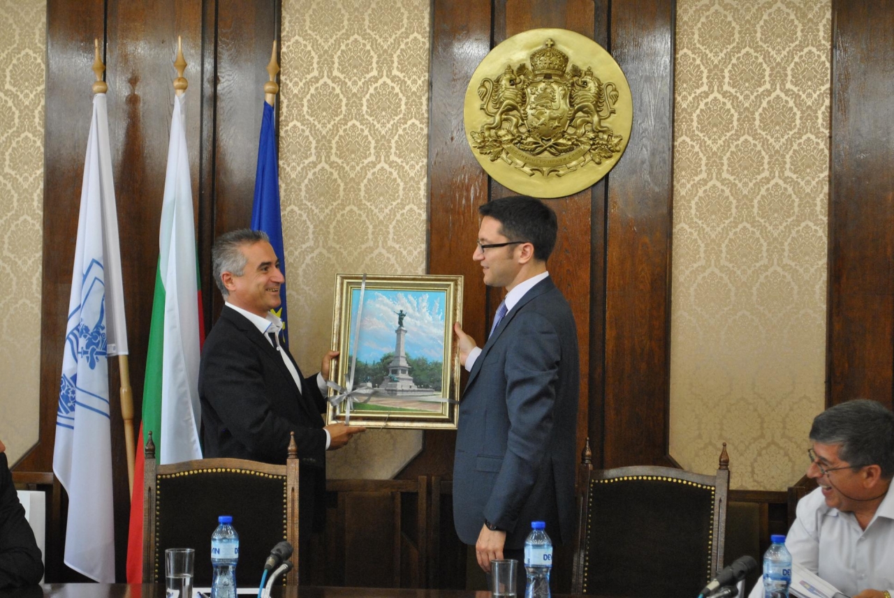 В края на срещата, г-н Наков подари на г-н Вигенин по повод първото му посещение в Русе картина с един от символите на града – Паметника на Свободата, с пожеланието тя да му напомня за поетите ангажименти.