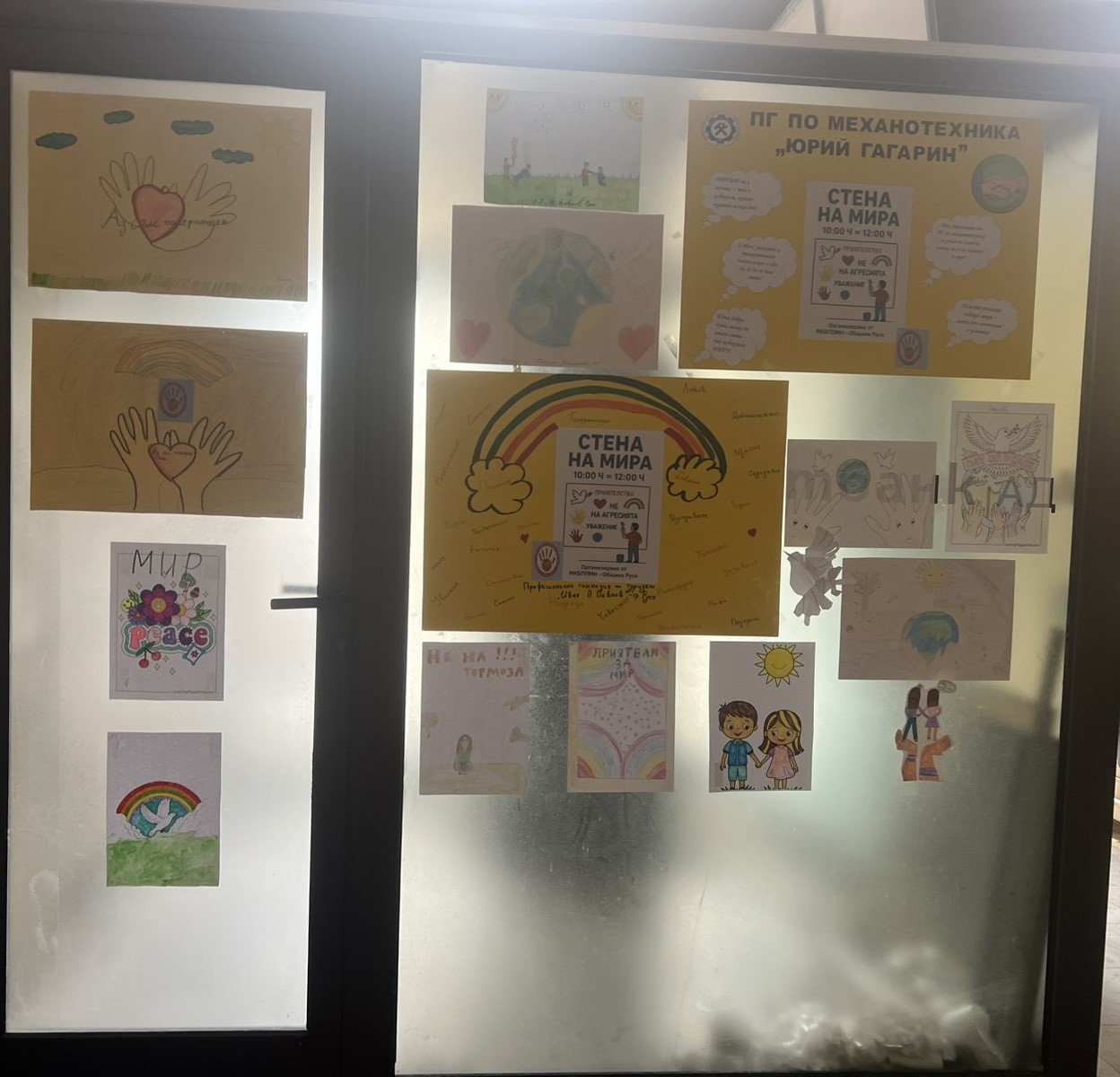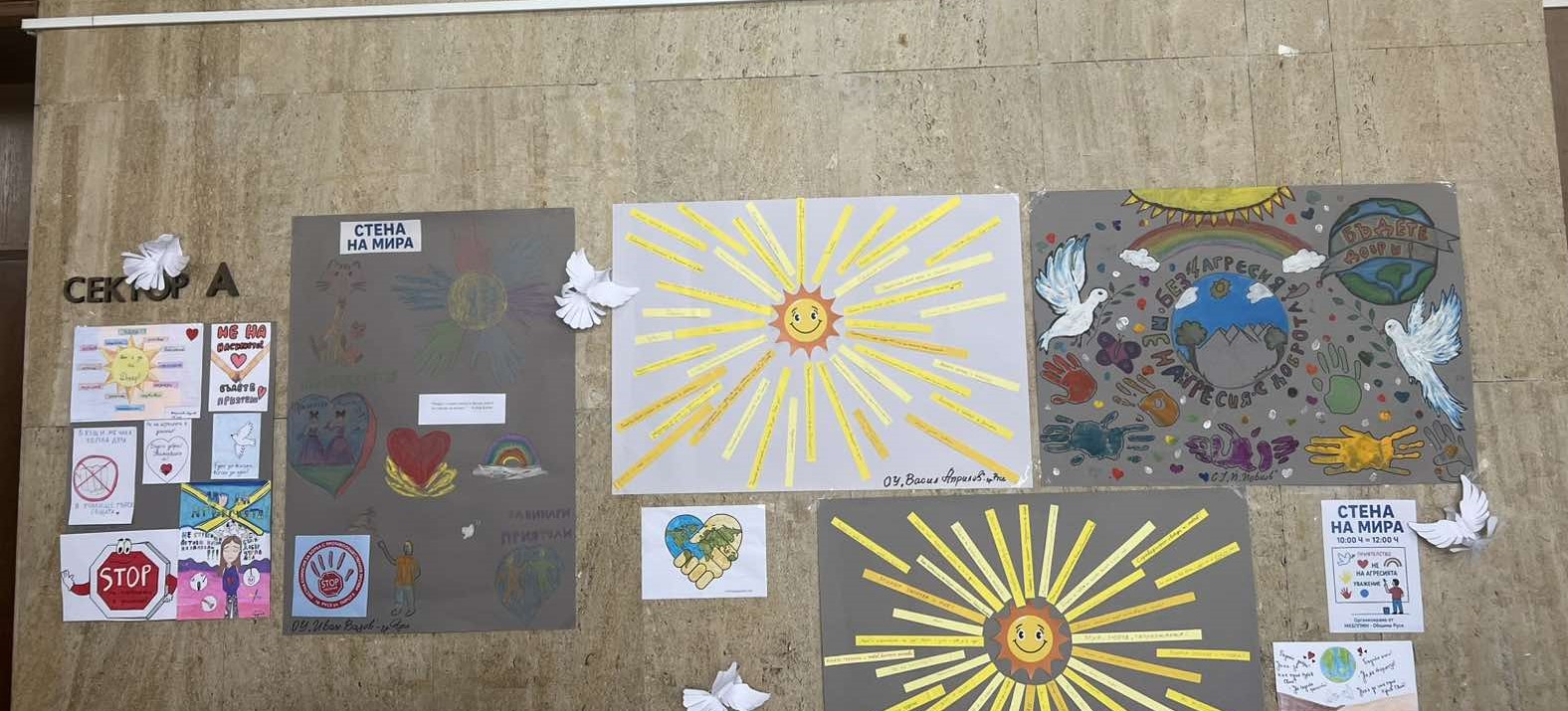 Кампанията „Стена на мира“, организирана от Местната комисия за борба с противообществените прояви на малолетните и непълнолетните (МКБППМН) се проведе в Русе от 10 октомври до 5 ноември. В инициативата се включиха ученици от всички училища в града. Чрез рисунки, плакати, колажи и лично написани послания те отправиха категоричен призив срещу агресията и насилието, акцентирайки върху ценностите на добротата, приятелството и разбирателството.