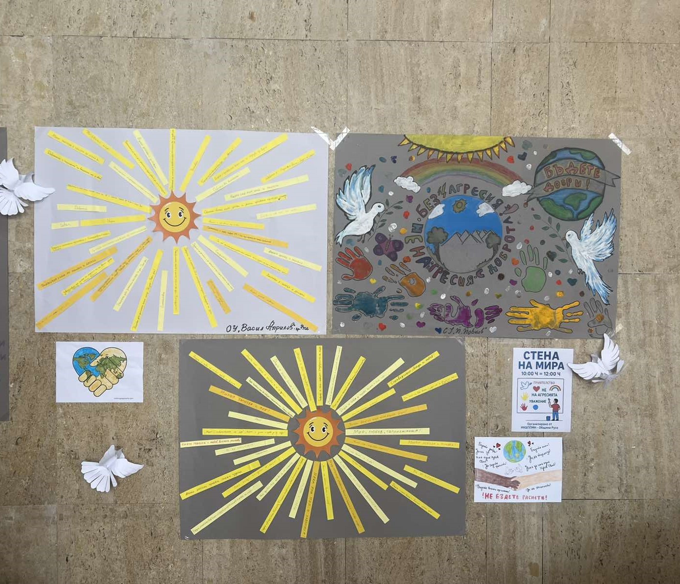 Сред посланията, създадени от участниците, се откроиха: „Доброто е суперсила“, „Мирът започва от мен и теб“, „Да бъдем приятели, не врагове“.