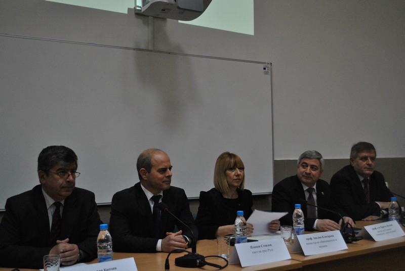 Дискусия „Образованието – модерно, достъпно, качествено“ се проведе днес в аулата на Корпус 2 на Русенския университет. Срещата се проведе с участието на министъра на образованието и науката проф. д-р Анелия Клисарова. Приветствия към участниците поднесоха също областният управител Венцислав Калчев, кметът на Община Русе Пламен Стоилов, ректорът на Русенския университет проф. Христо Белоев. На дискусията присъстваха също Свилен Иванов – заместник-кмет „Комунални дейности“, Ирена Петрова – директор Дирекция „Култура и образование“ и Сашо Щерев – началник отдел „Образование, младежки дейности и спорт“. В дискусията се включиха представители на регионалните инспекторати в Североизточна България, директори на средни училища и професионални гимназии, представители на бизнеса.