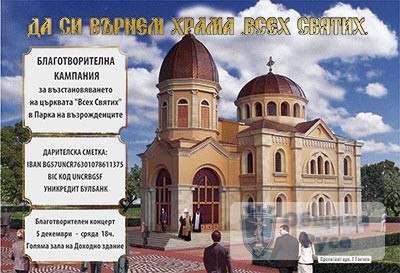 Официалното възобновяването на дарителската кампания ще започне с концерт, който ще се проведе утре (5 декември) от 18ч. в Голямата зала на Доходно здание. Приветствие към участниците и гостите ще поднесат кметът Пламен Стоилов, архимандрит Виктор, като представител на Русенската света митрополия и инж. Божидар Йотов в качеството си на съпредседател на Сдружението „Всех Святих“. В концерта ще участват формации и индивидуални изпълнители от Общинския младежки дом и Общинския детски център за култура и изкуство. Безвъзмездно с изпълнения ще се включи и русенската поп звезда Дивна Станчева. В рамките на концерта ще бъдат прожектирани и кратки интервюта с хора, сред които и русенски общественици, които споделят спомени за съборения храм.