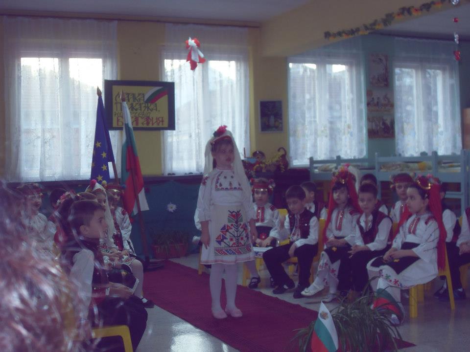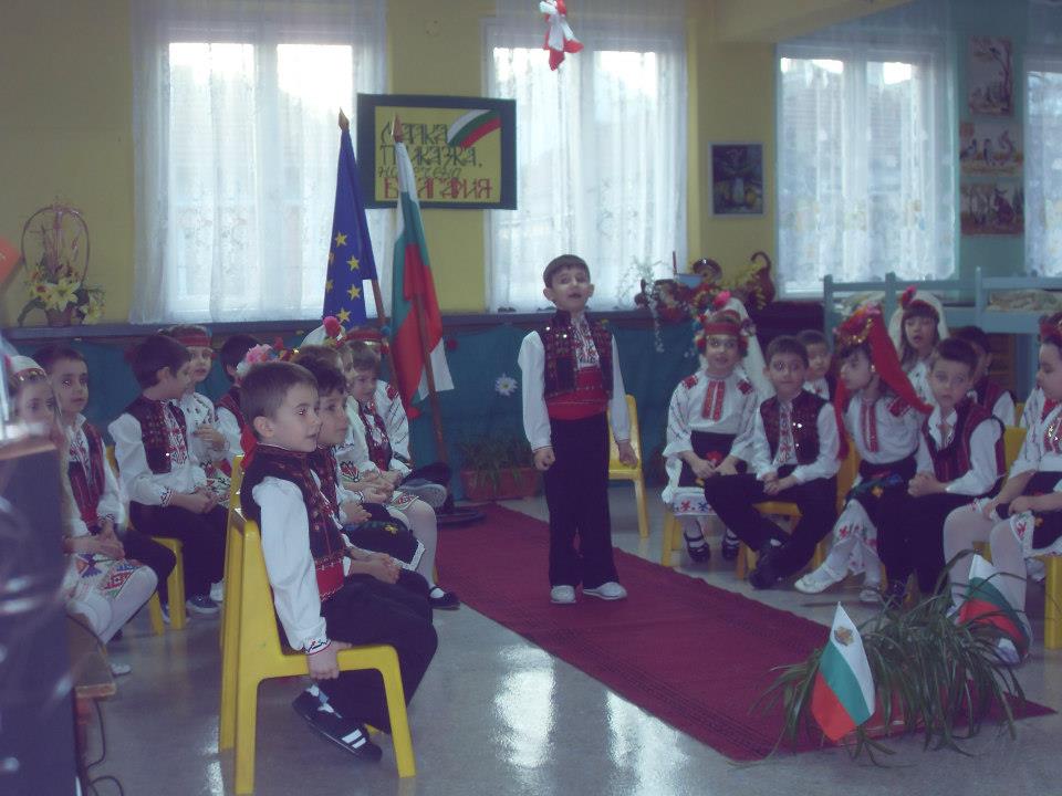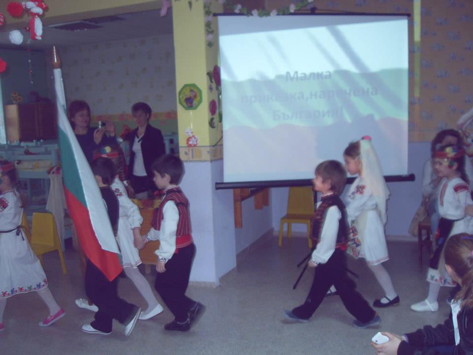 Под мотото „Малка приказка, наречена България“, малчуганите впечатлиха своите родители със знанията си за българските традиции и обичаи. Малките палавници с увереност и уважение разказваха за националните герои, пролели кръвта си за свободата на Родината. Те заявиха с гордост, че са техни достойни наследници.