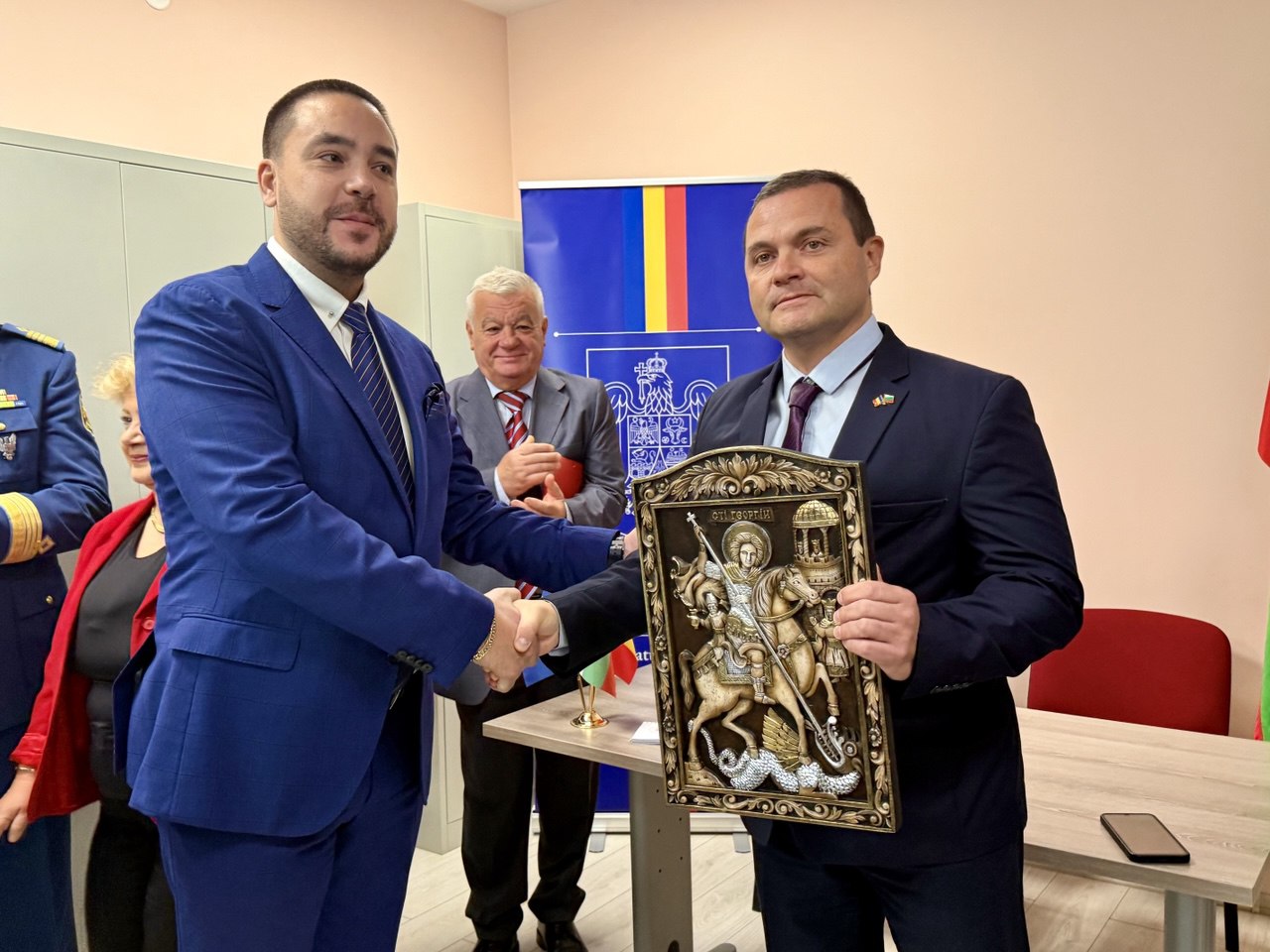 В поздравлението си към почетния консул кметът Пенчо Милков подчерта, че откриването на консулството е историческа крачка за двустранните отношения. „Двата народа имаме обща история, общо настояще и общо бъдеще. Затова е толкова важно откриването на това консулство, което ще затвърди и разшири нашето сътрудничество. Дойдох тук с управленския екип на местната администрация, за да установим още от първия ден работни отношения и да окажем пълно съдействие при изпълнение на вашата дейност“, заяви кметът. Той поднесе поздравителен адрес и подари на консулството икона на Свети Георги, пожелавайки светецът да закриля новата институция. „Свети Георги е закрилник на Русе и Гюргево – символ на смелост, вяра и единство между нашите два града“, допълни Милков.