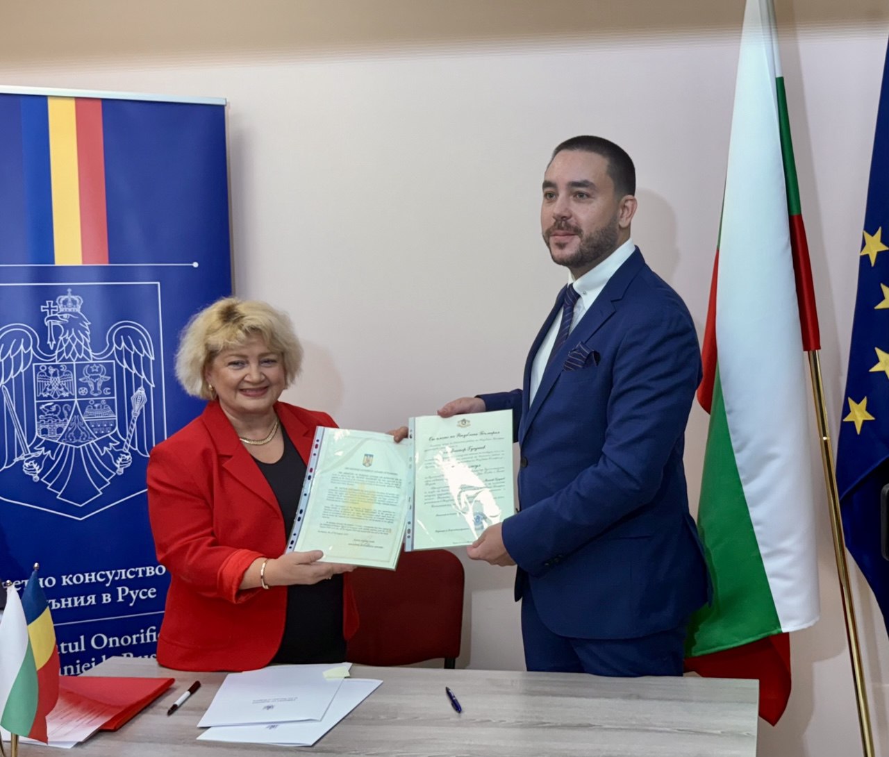 Почетното консулство на Румъния в Русе бе открито днес от Н. Пр. Бръндуша Предеску – извънреден и пълномощен посланик на Румъния в България, и от почетния консул – адвокат Виктор Гугушев, председател на Управителния съвет на Българо-румънската търговска камара. Двамата официално прерязаха лентата на консулството, което се намира на ул. „Войводова“ 12–14, и поканиха гостите да разгледат помещението.