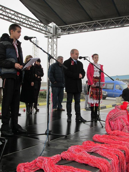 „Тази инициатива е един добър пример за всички връстници на трите седмокласнички от ОУ „Любен Каравелов“. За това как младите хора, с развитието на своите заложби и дарби, реално могат да допринасят за издигане авторитета на Русе и за активизирането на културния обмен с нашите европейски партньори”, каза в приветствието си г-н Стоилов. Той отправи специална благодарност към ръководството на училището и към преподавателите за подкрепата, която са оказали на трите момичета, изработили мартеницата - Мирослава Ивайлова, Анастасия Великова и Славена Данева. Г-н Стоилов поднесе на момичетата подаръци и им пожела успех в начинанието.
