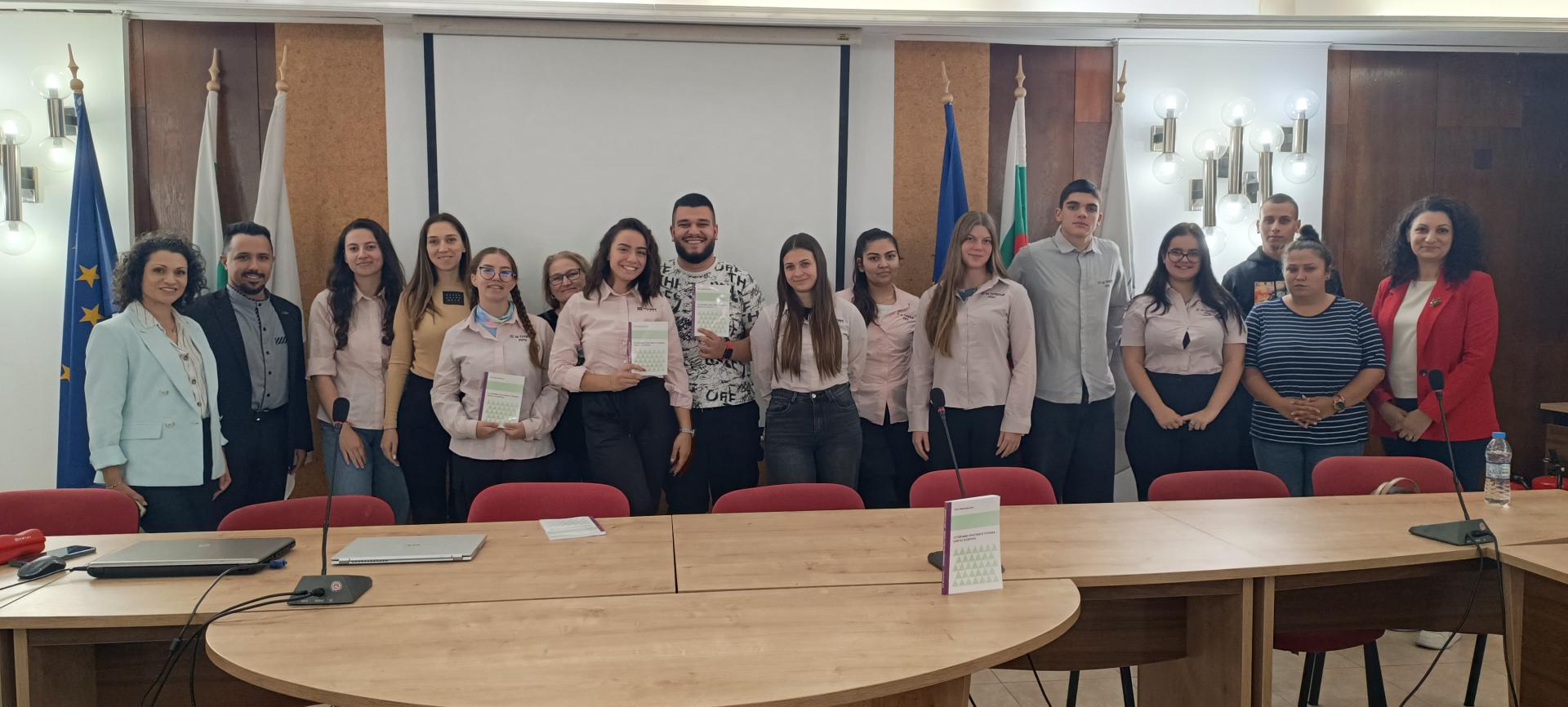 В зала 1 на Община Русе се проведе първата лекция от втория етап на проекта „Моето Русе. Творческа работилница за туризъм“, който се реализира от „Хъб за иновации и туризъм“ с финансовата подкрепа на Общинска фондация „Русе – град на свободния дух“. Пет отбора гимназисти от ПГ по туризъм „Иван П. Павлов“ имаха възможност да се запознаят с темата „Устойчиви туристически практики“, представена от д-р Олга Манчева-Али – главен асистент в катедра „Туризъм“ на Великотърновския университет и автор на книгата „Устойчиви практики в туризма – опитът в Европа“.