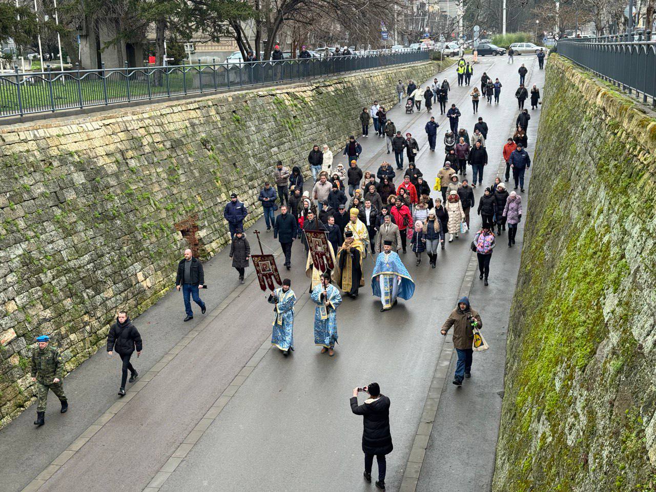 Празничният ден започна със сутрешна света литургия в Катедралния храм „Света Троица“, след която от храма потегли литийно шествие към понтона под хотел „Рига“. По случай Богоявление Русенската света митрополия със съдействието на Община Русе и Областна администрация – Русе проведе традиционният тържествен водосвет под звуците на маршове, изпълнени от Общинския духов оркестър. Главиницкият епископ Макарий и свещеници от Русенската света митрополия благословиха знамената на почетната рота на Русенския гарнизон.