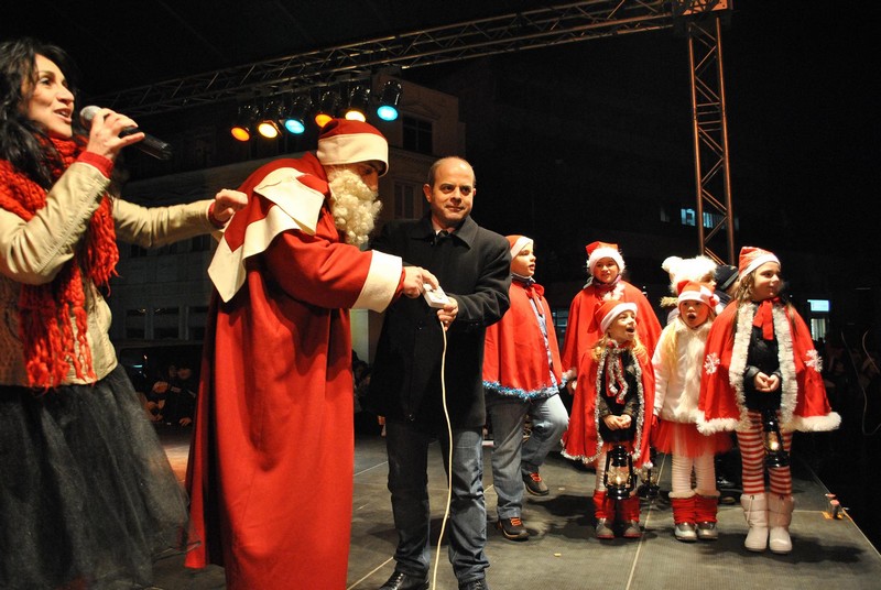 Дядо Коледа пристигна под звуците на барабаните на атрактивната перкусионно-танцова група „Вакали”. Той поздрави публиката с предстоящите празници, а изпълнителите от „Вакали“ зарадваха публиката със своето „Дръм шоу”.