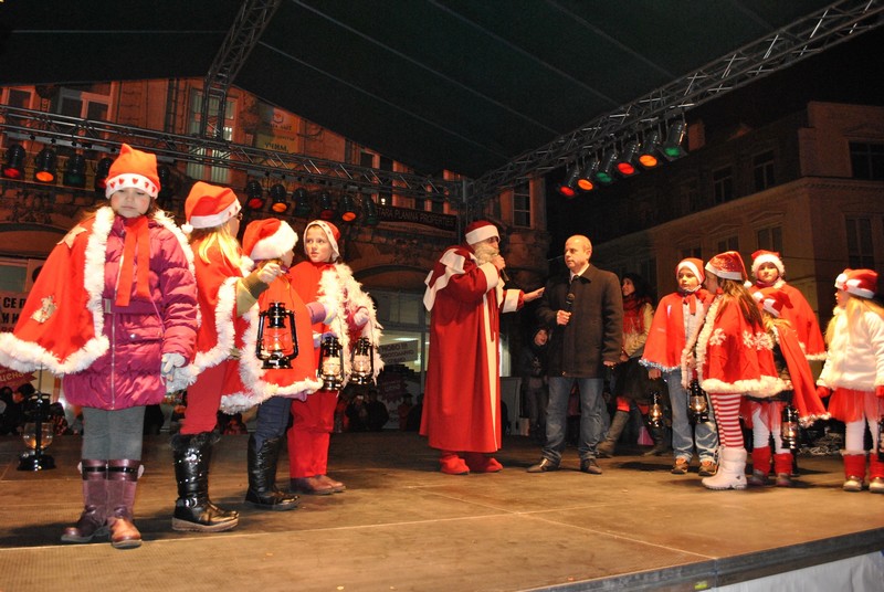Кметът Пламен Стоилов приветства събралите се граждани. В обръщението си, г-н Стоилов заяви, че и тази година, в рамките на традиционния Коледно-новогодишен фестивал, русенци и гостите на града ще имат възможност да се насладят на богата и разнообразна културна програма. В навечерието на светлите коледни и новогодишни празници, той отправи пожелания за здраве и благоденствие. След това кметът запали светлините на коледното дърво. На 14-метровата елха светнаха 3 500 лампички.